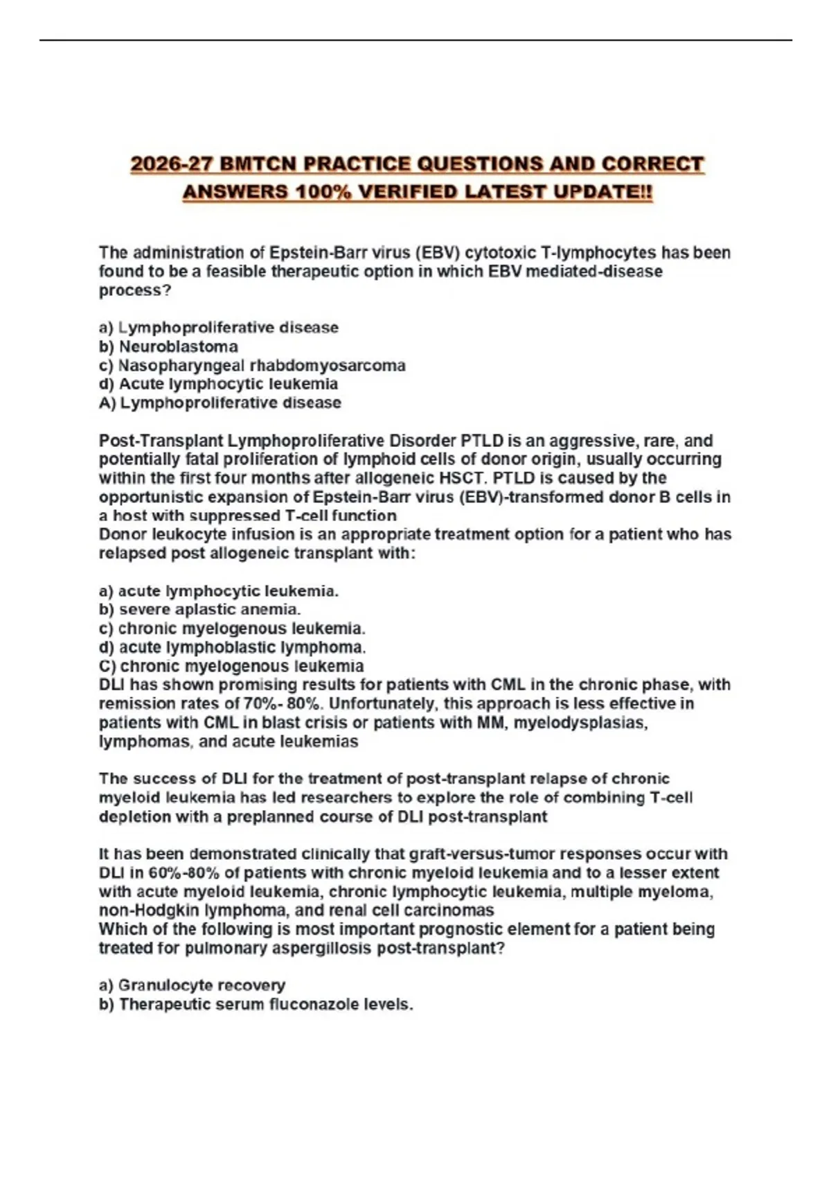 BMTCN PACKAGED EXAMS!!