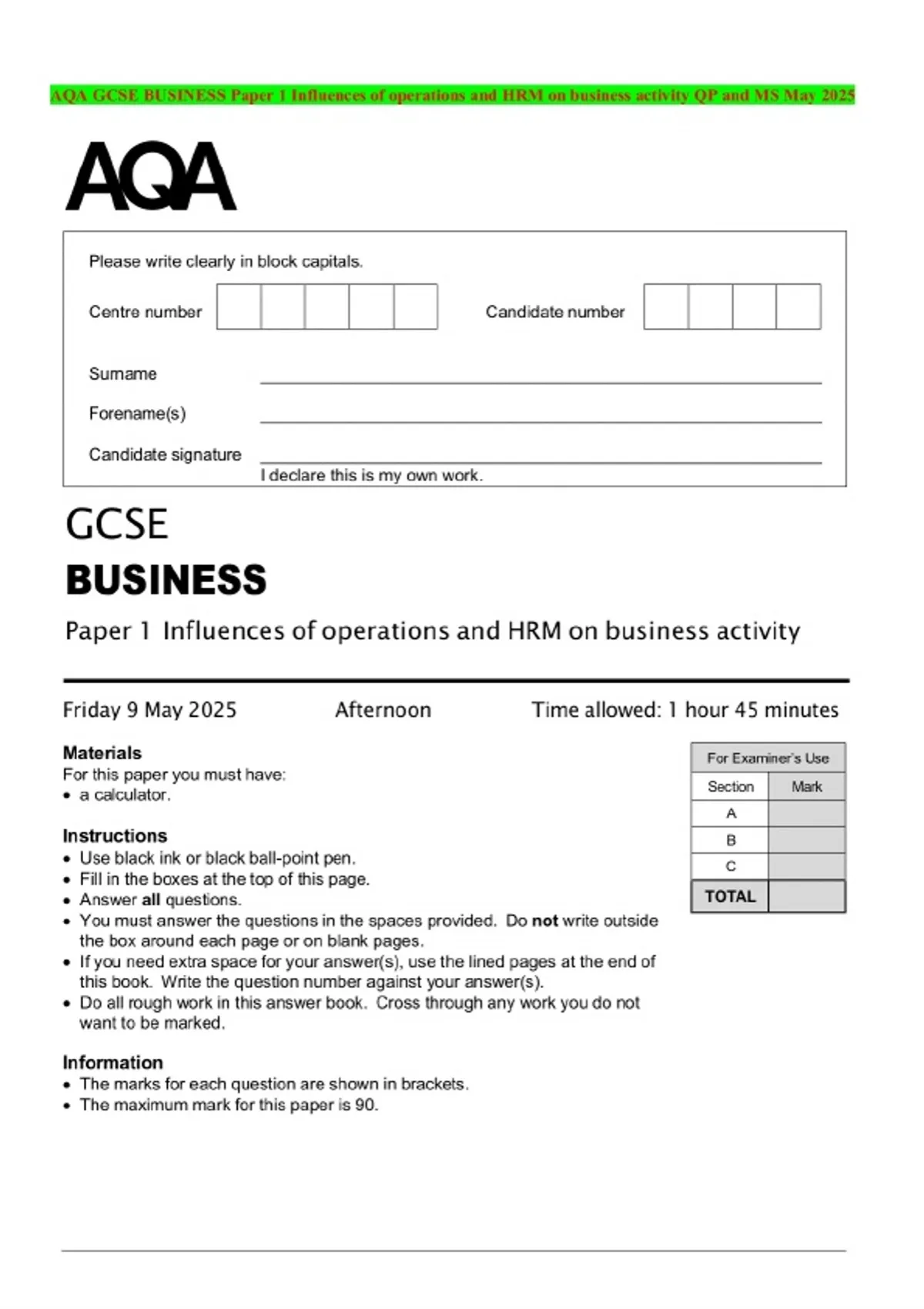 BUNDLE ::: AQA GCSE BUSINESS 2025 Combined Question Paper and Mark Scheme