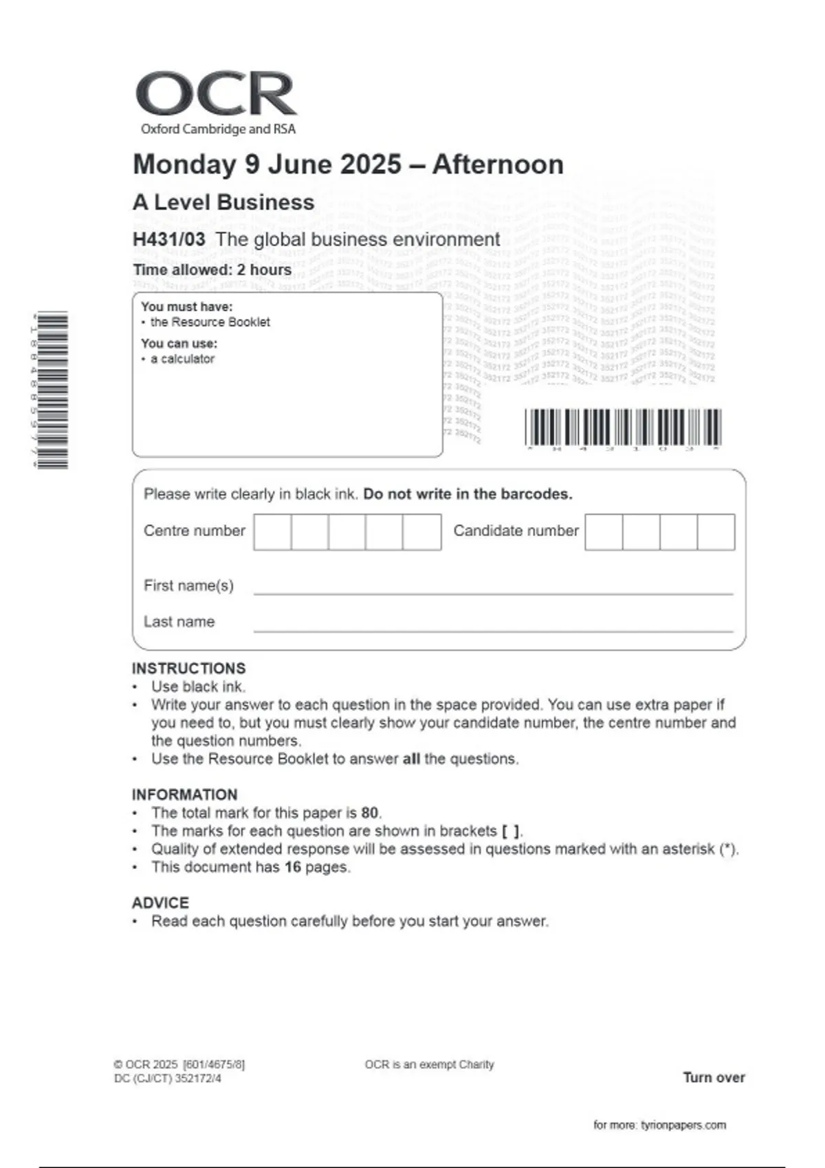 2025 OCR A LEVEL BUSINESS|H431_03| question paper |June 2025