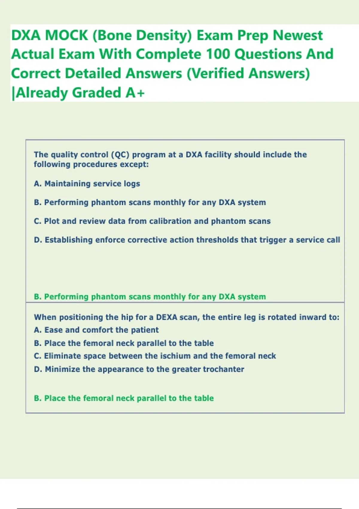 DXA MOCK (Bone Density) Exam Prep Newest Actual Exam With Complete 100 Questions And Correct Detailed Answers (Verified Answers) |Already Graded A+DXA MOCK (Bone Density) Exam Prep Newest Actual Exam With Complete 100 Questions And Correct Detailed Answers (Verified Answers) |Already Graded A+DXA MOCK (Bone Density) Exam Prep Newest Actual Exam Wit