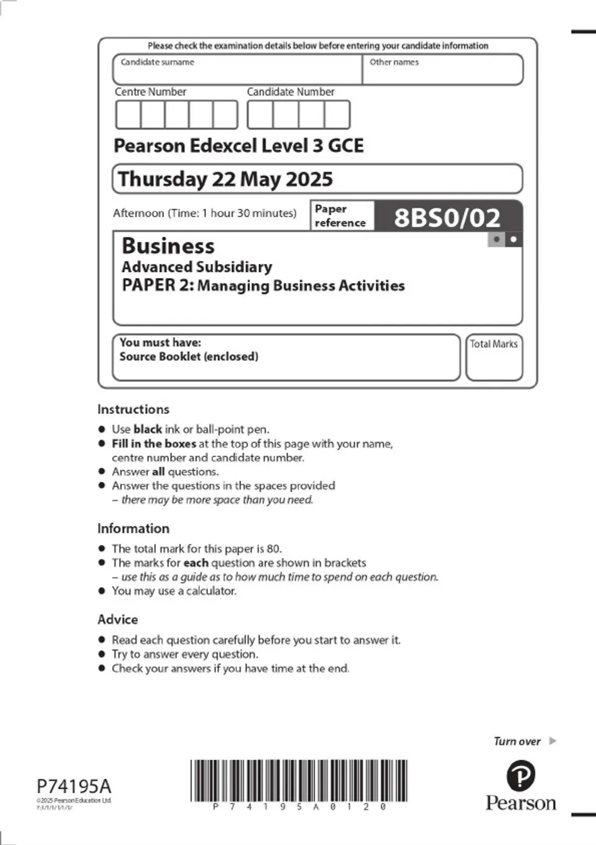 2025 PEARSON EDEXCEL GCE LEVEL 3 Business Advanced Subsidiary ( 8BS0) PAPERS 1 & 2 WITH MERGED QUESTION PAPERS AND MARK SCHEMES