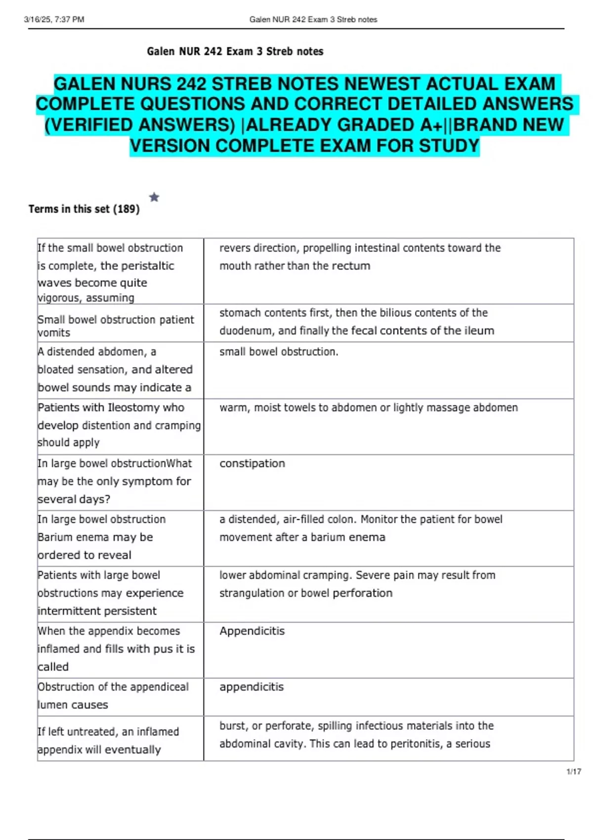 NURS 242 EWEST ACTUAL EXAM COMPLETE QUESTIONS AND CORRECT DETAILED ANSWERS (VERIFIED ANSWERS) |ALREADY GRADED A+||BRAND NEW VERSION COMPLETE EXAM FOR STUDY NURS 242 EWEST ACTUAL EXAM COMPLETE QUESTIONS AND CORRECT DETAILED ANSWERS (VERIFIED ANSWERS) |ALREADY GRADED A+||BRAND NEW VERSION COMPLETE EXAM FOR STUDY NURS 242 EWEST ACTUAL EXAM COMPLETE QU