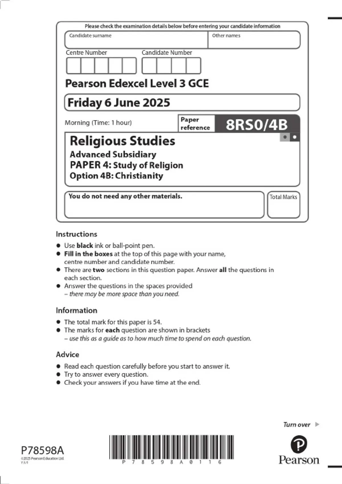 2025 PEARSON EDEXCEL GCE LEVEL 3 Religious Studies Advanced Subsidiary ( 8RS0) ALL PAPERS WITH MERGED QUESTION PAPERS AND MARK SCHEMES