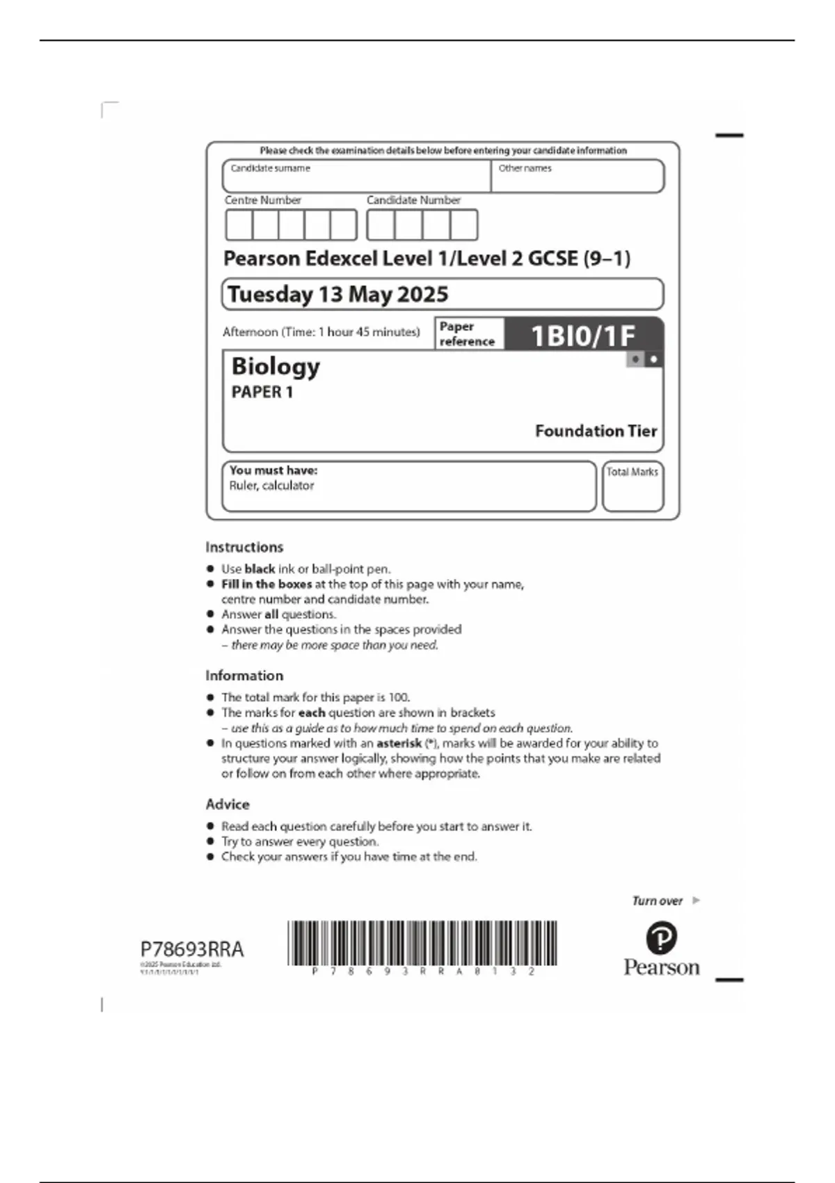 gcse edexcel biology paper 1f 2025 ( foundation tier ) merged with mark scheme