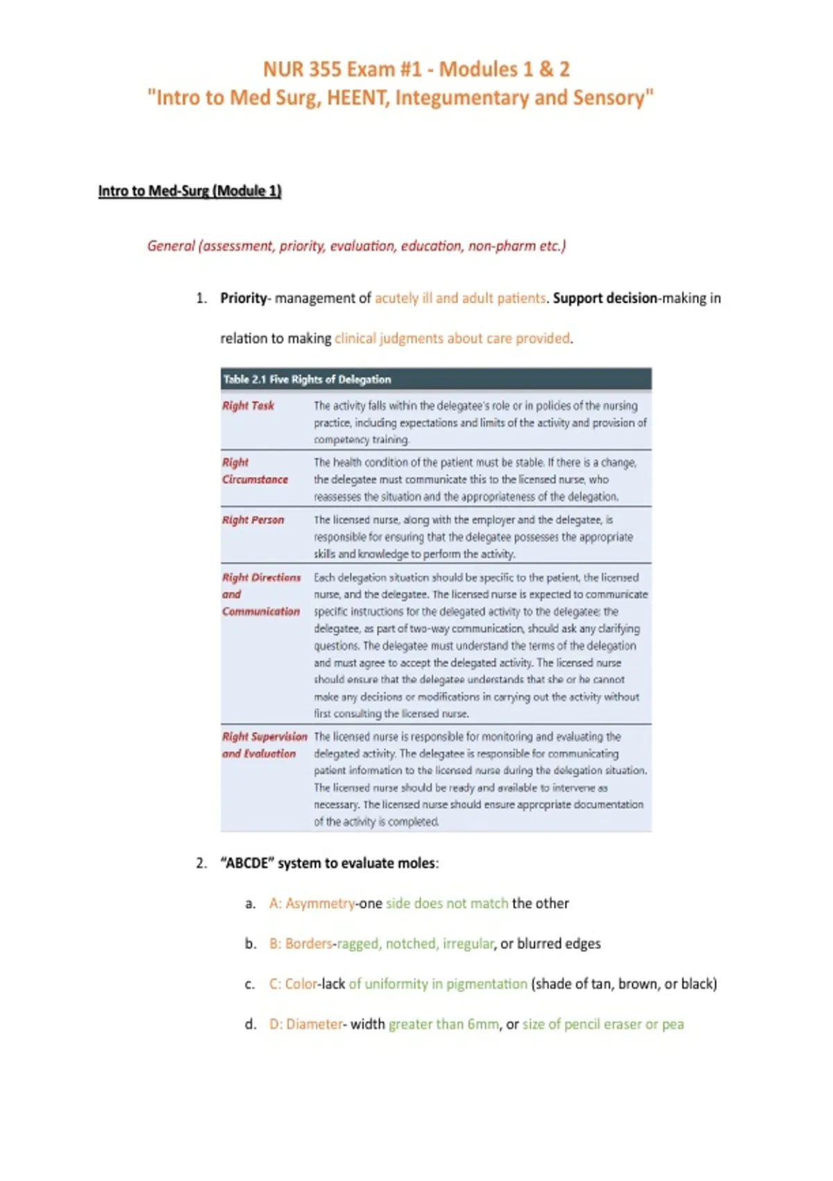 NUR 355 Exam 2 Study Guide - Module 3 & 4 | Arizona College of Nursing