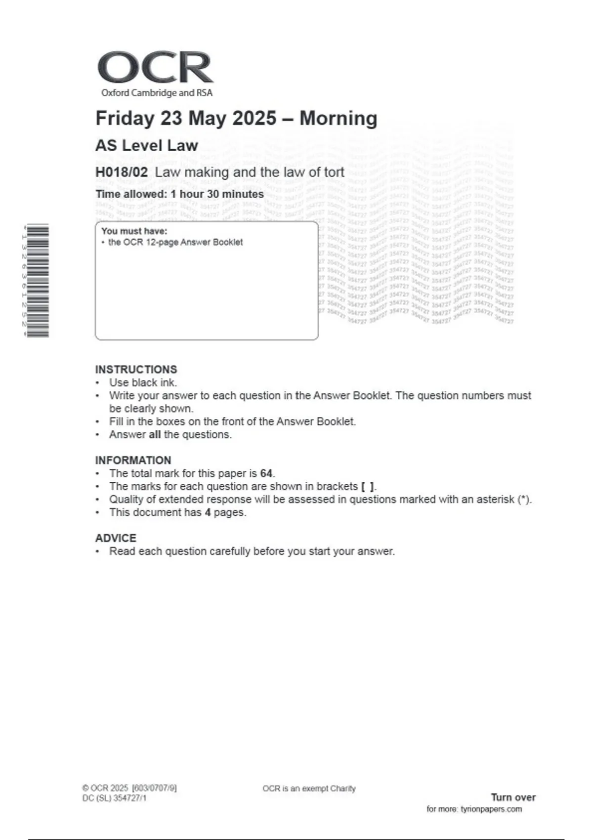 2025 OCR AS LEVEL LAW |H018_02)| question paper |June 2025