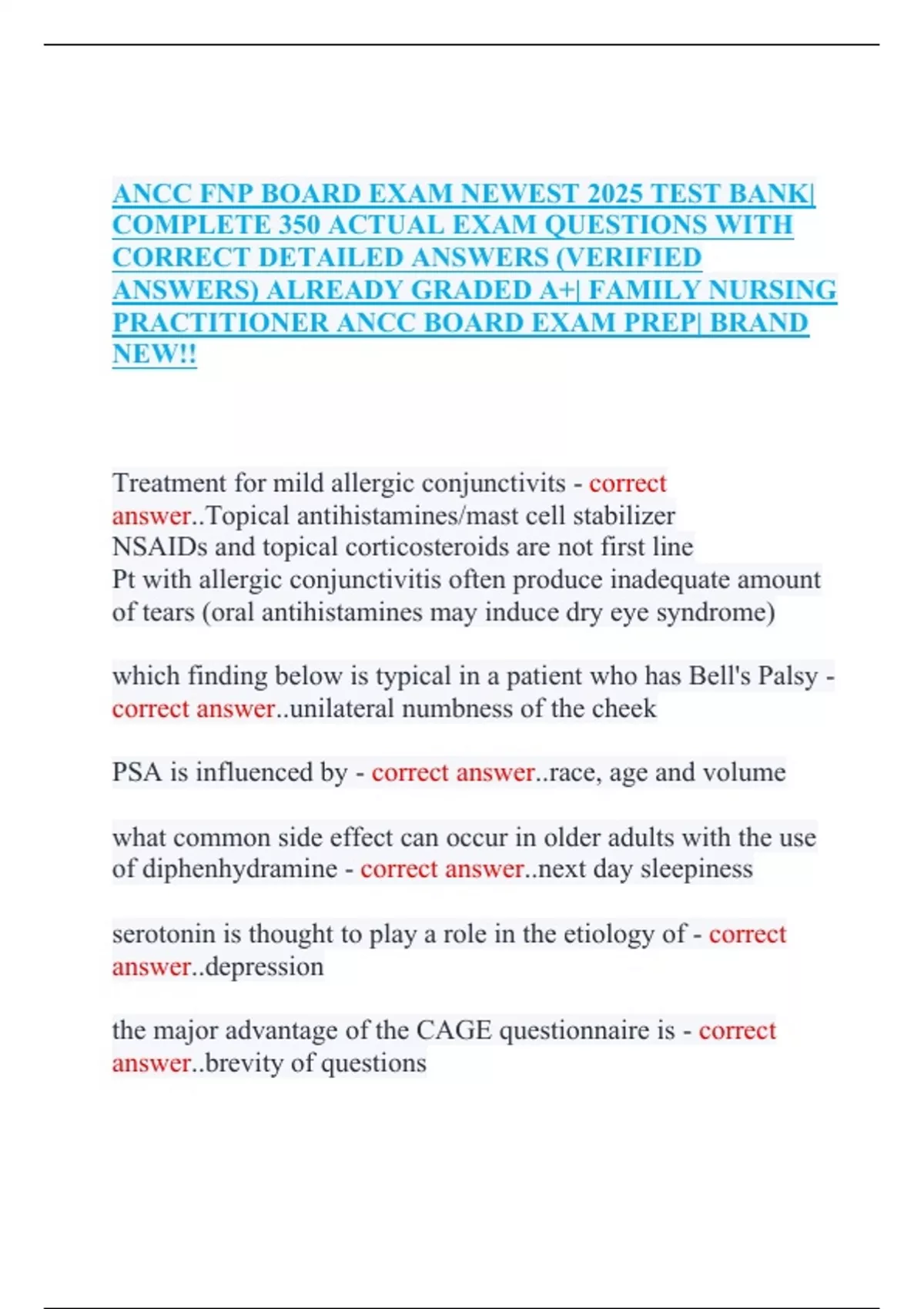 ANCC FNP Certification Exam Practice:High-Yield Questions With Detailed Rationales” Questions and Correct Answers the Latest Update 2026