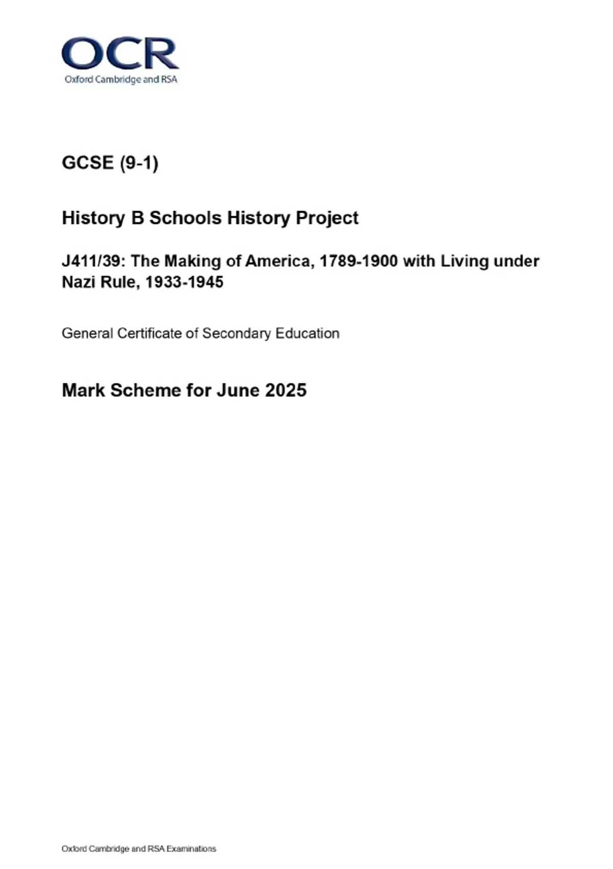 Package Deal-::2025 OCR GCSE (9–1) History B EXAMS-Question Paper & Final Marking Scheme MERGED