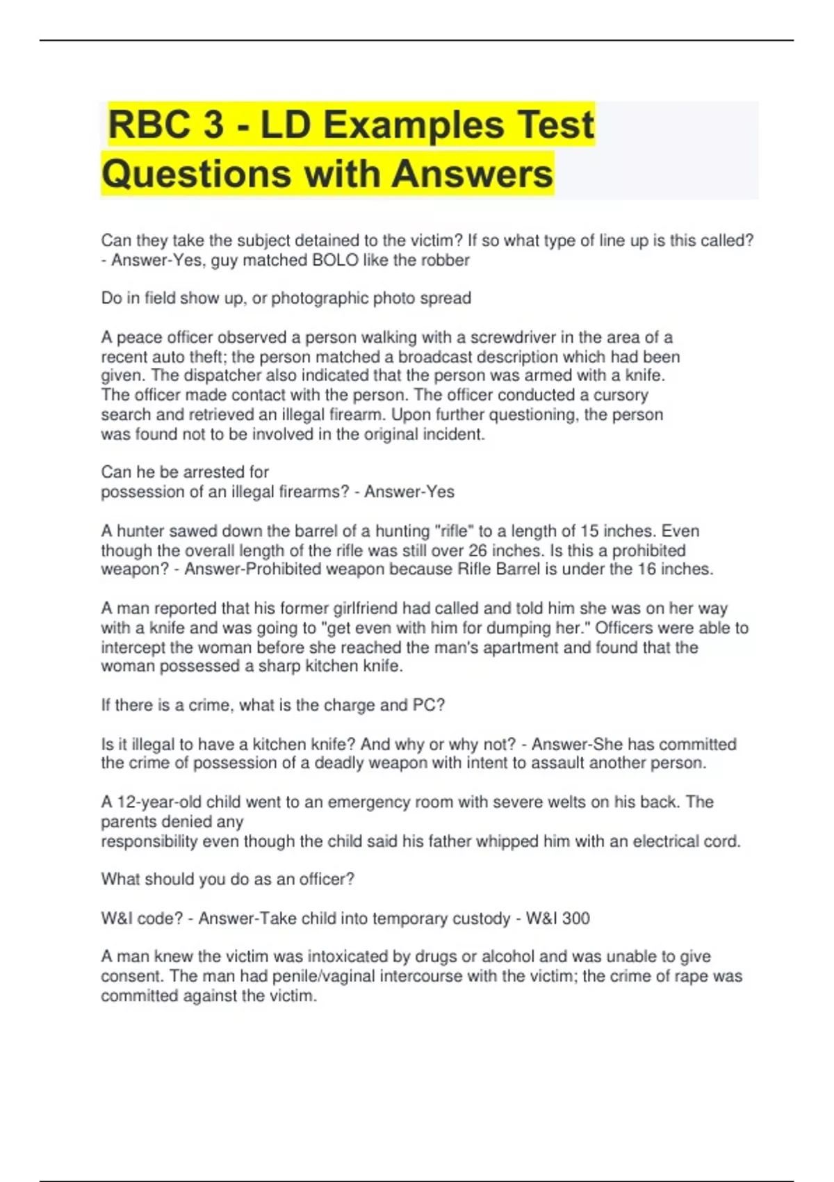 RBC EXAM QUESTIONS AND ANSWERS 2 Exam (elaborations) RBC STUDY SET QUESTIONS WITH 100% CORRECT ANSWERS 3 Exam (elaborations) RBC TEST QUESTIONS WITH CORRECT ANSWERS 4 Exam (elaborations) RBC 2 PRACTICE TEST QUESTIONS WITH CORRECT ANSWERS 5 Exam (elaborations) RBC 2 SCENARIOS EXAM QUESTIONS WITH 100% CORRECT ANSWERS 6 Exam (elaborations) RBC 3