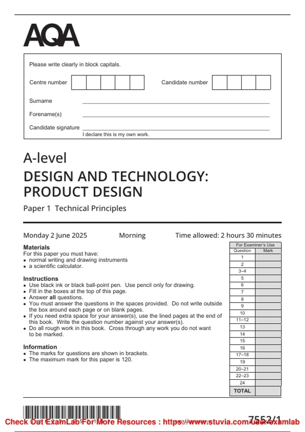 A Level Design and Technology AQA Paper 1,2 + Mark Scheme 2025
