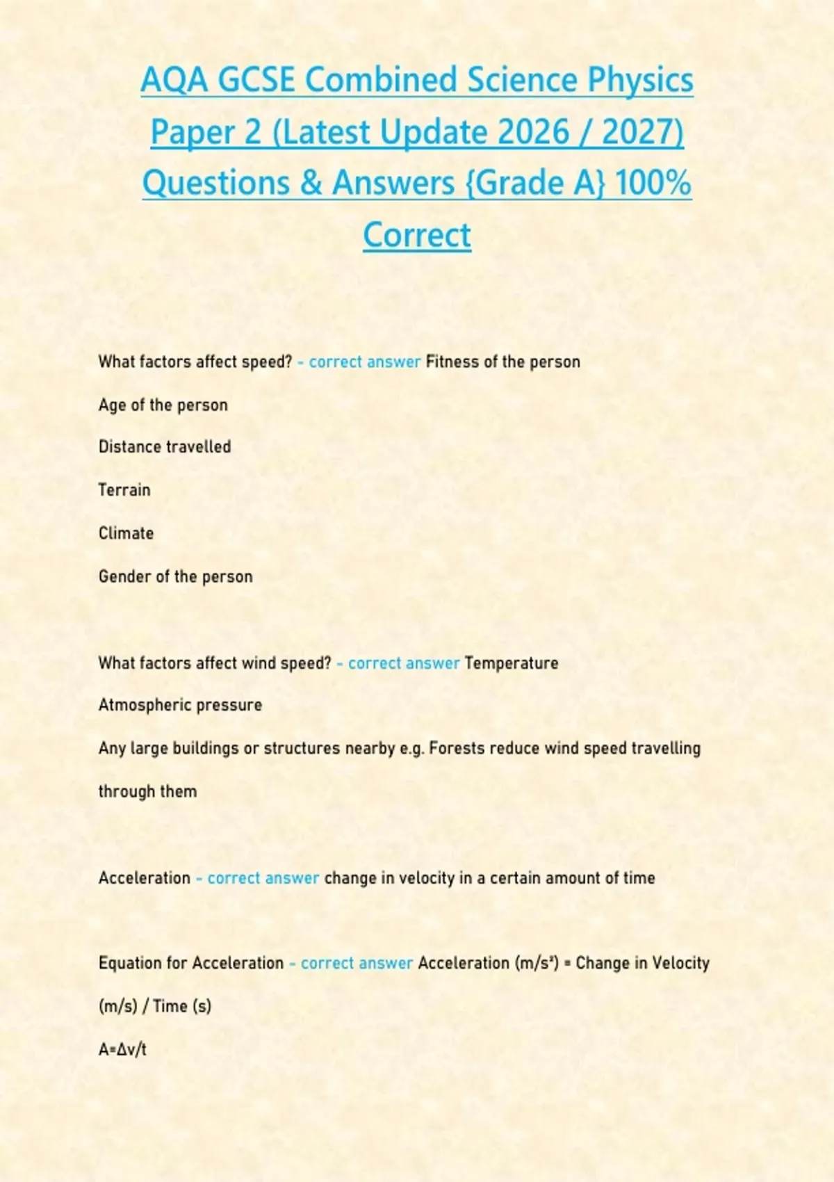 AQA GCSE Physics Paper 2 (Latest Update 2026 / 2027 STUDY BUNDLE PACKAGE WITH SOLUTIONS) Questions & Answers {Grade A} 100% Correct
