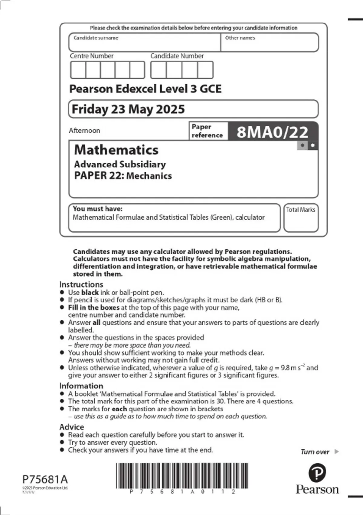 2025 AS-LEVEL EDEXCEL MATHEMATICS PAPER 3 WITH MARK SCHEME