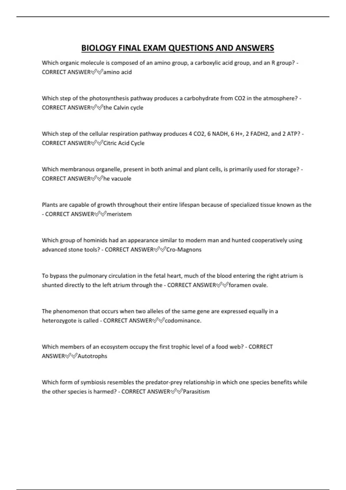 BIOLOGY FINAL EXAM QUESTIONS AND ANSWERS