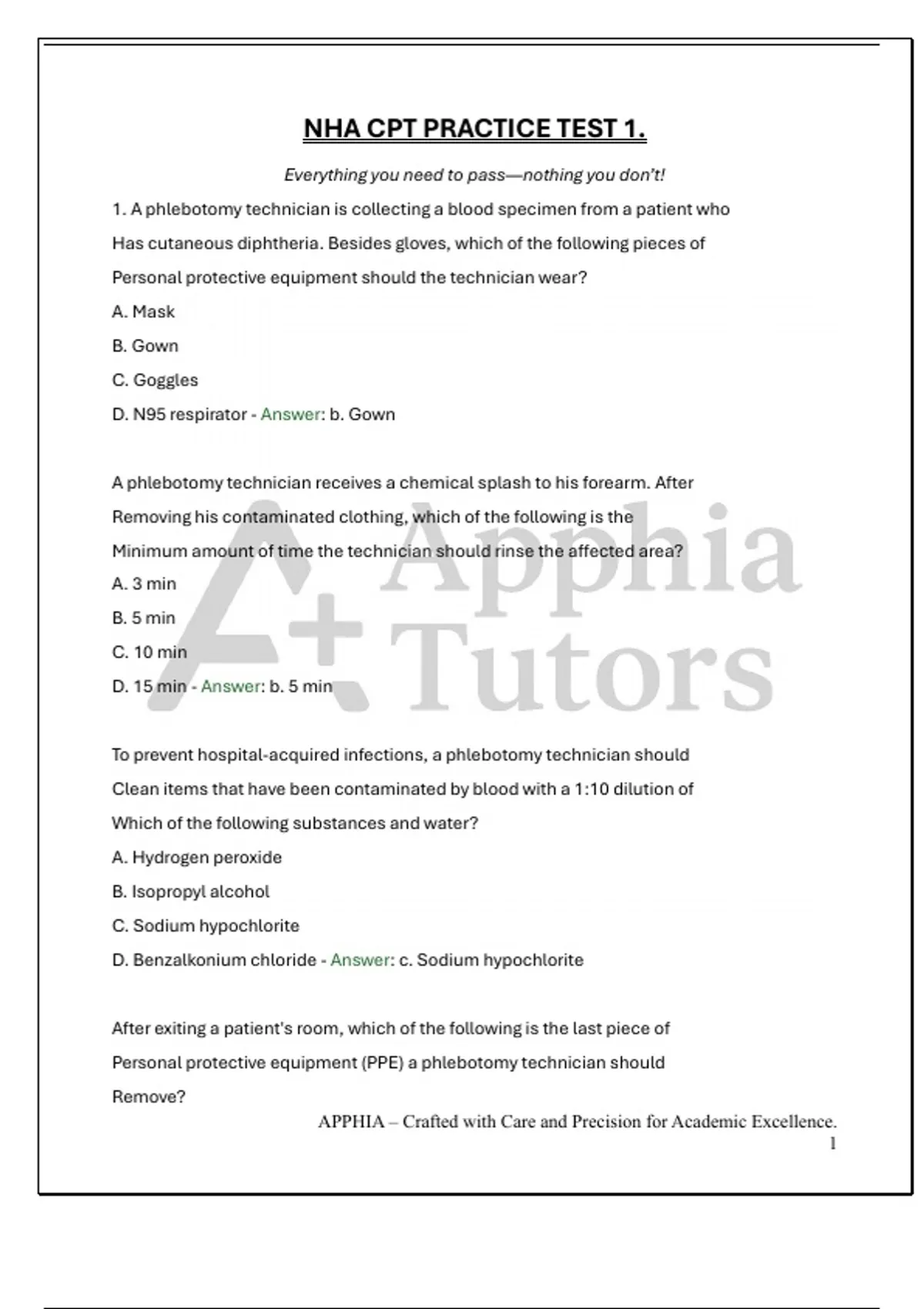 1. A phlebotomy technician is collecting a blood specimen from a patient who