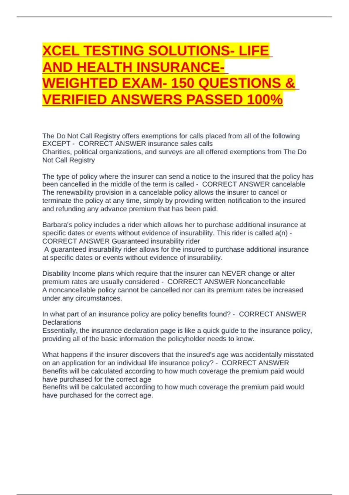 WEIGHTED EXAM- 150 QUESTIONS &