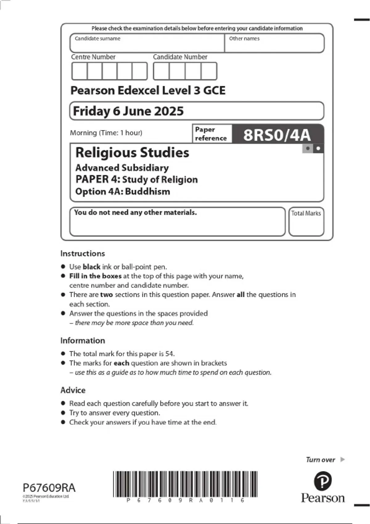 2025 PEARSON EDEXCEL GCE LEVEL 3 Religious Studies Advanced Subsidiary (GCE 8RS0) ALL PAPERS WITH QUESTION PAPERS AND MARK SCHEMES