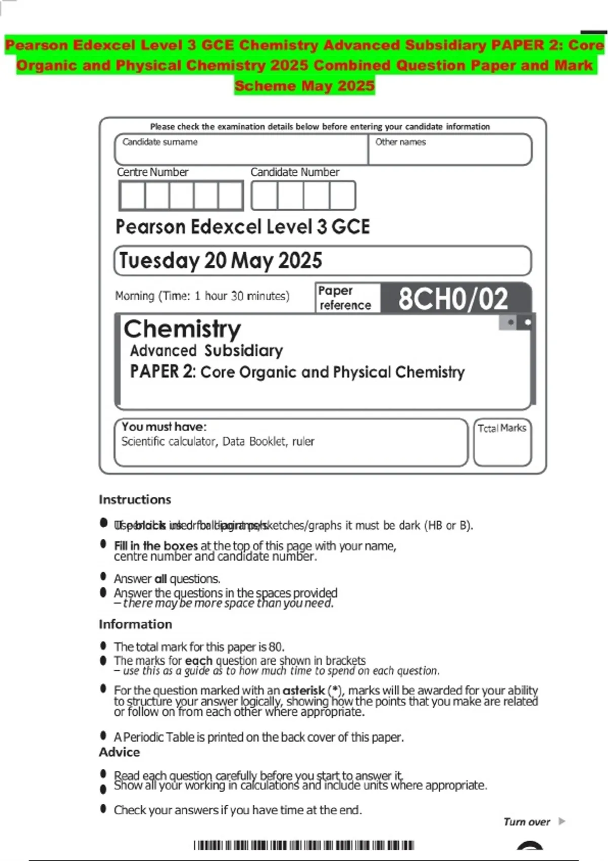 BUNDLE ::: Pearson Edexcel Level 3 GCE Chemistry 2025 Combined Question Paper and Mark Scheme