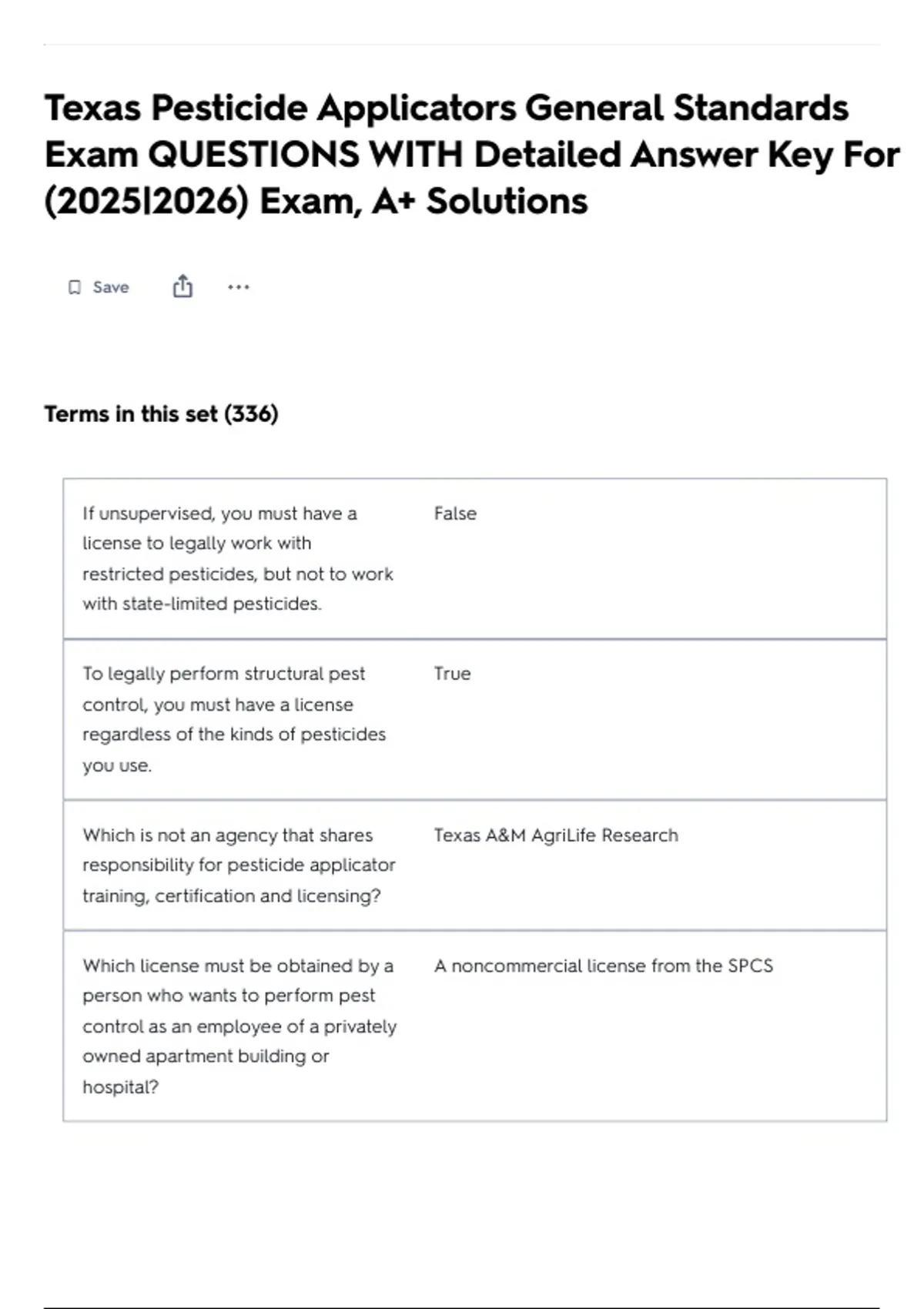 Texas Pesticide Applicators General Standards Exam QUESTIONS WITH Detailed Answer Key For (2025|2026) Exam, A+ Solutions
