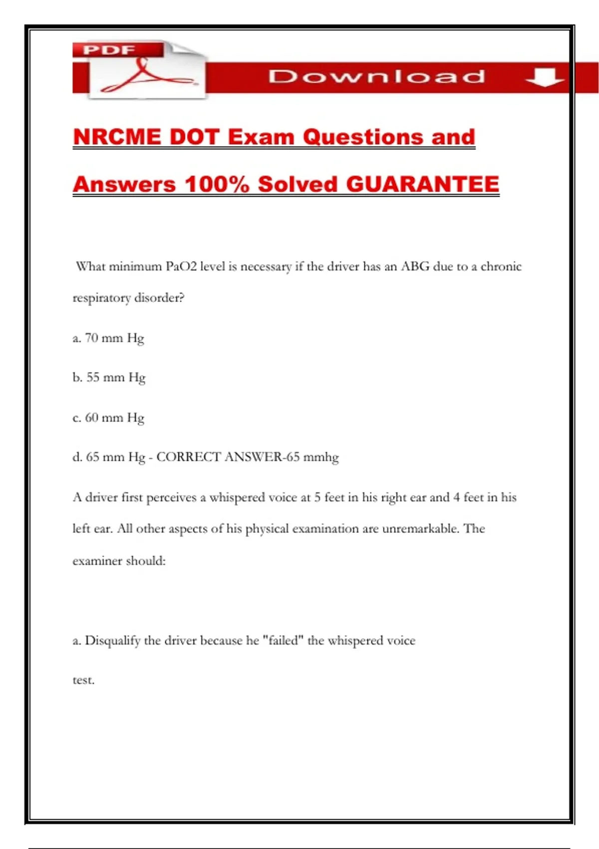 NRCME DOT Exam Questions and Answers 100% Solved GUARANTEE