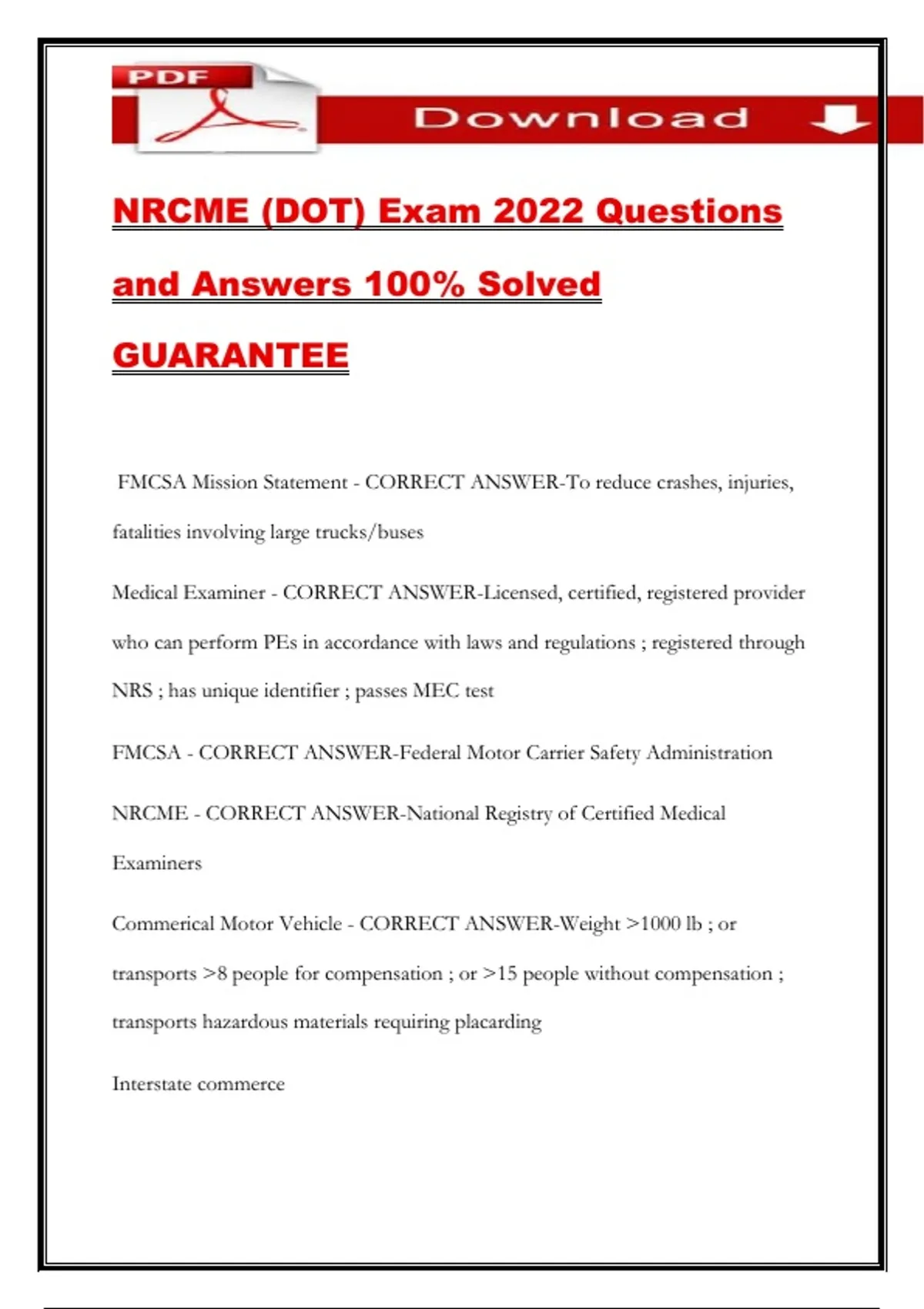 NRCME (DOT) Exam 2022 Questions and Answers 100% Solved GUARANTEE