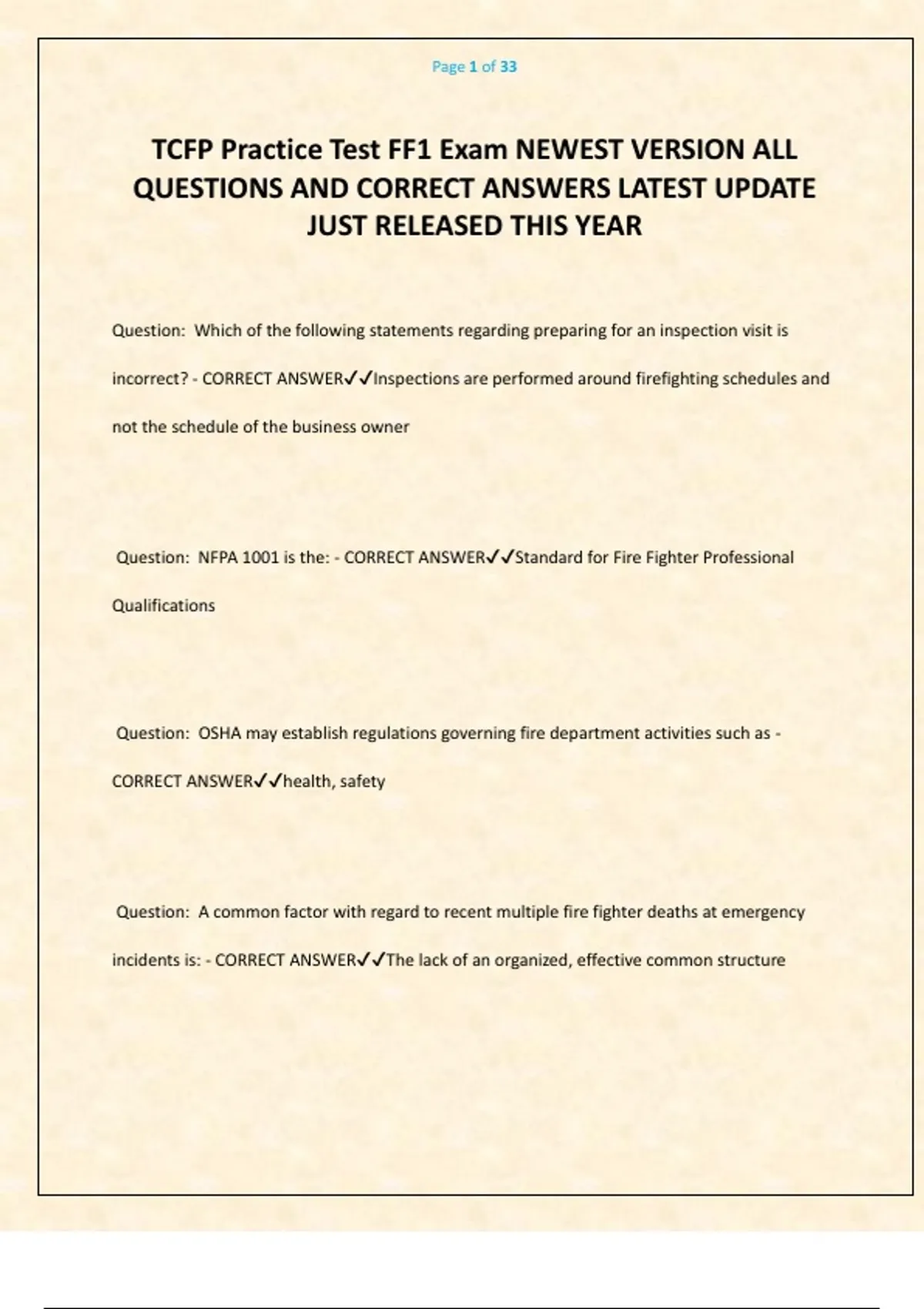 TCFP Practice Test FF1 Exam NEWEST VERSION ALL