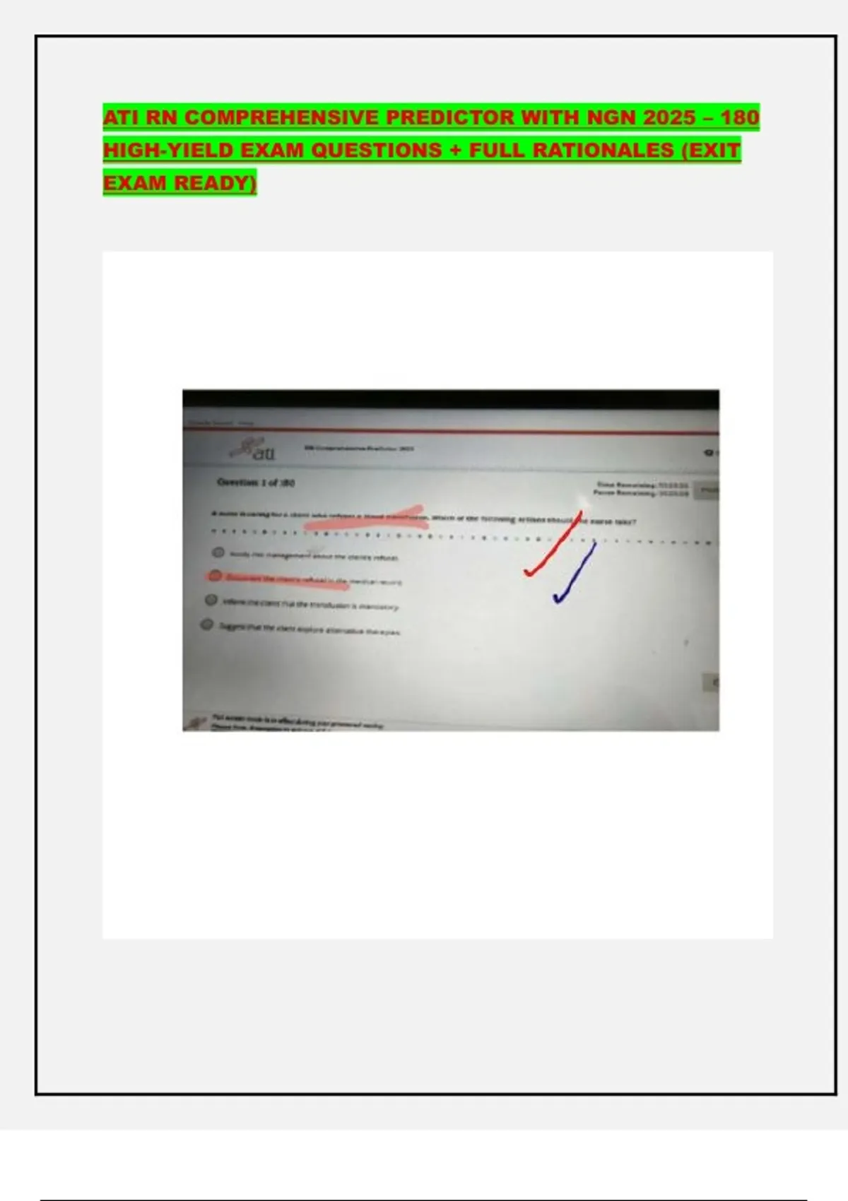ATI RN COMPREHENSIVE PREDICTOR WITH NGN 2025 – 180 HIGH-YIELD EXAM QUESTIONS + FULL RATIONALES (EXIT EXAM READY)