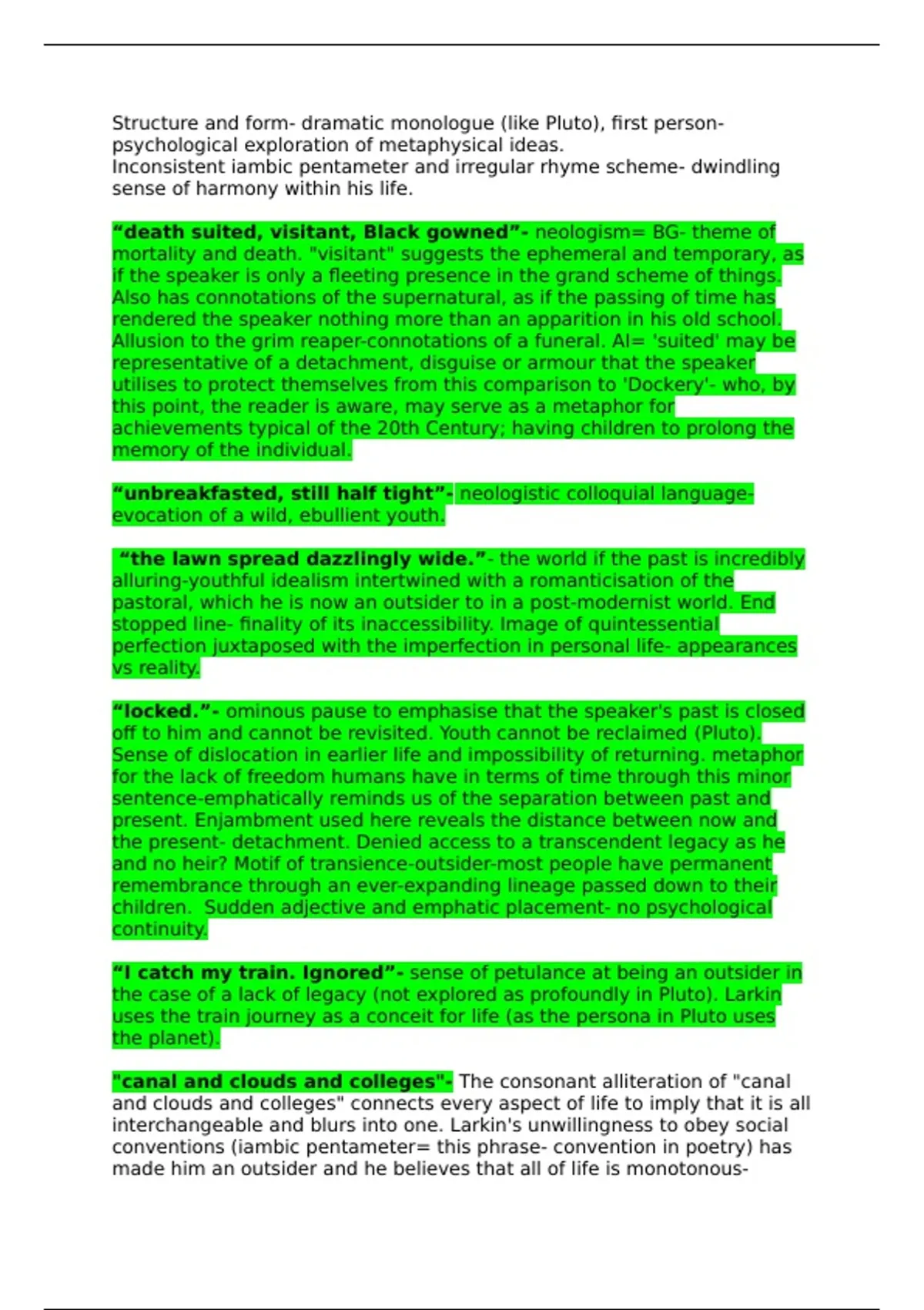 Structure and form- dramatic monologue (like Pluto), first person-