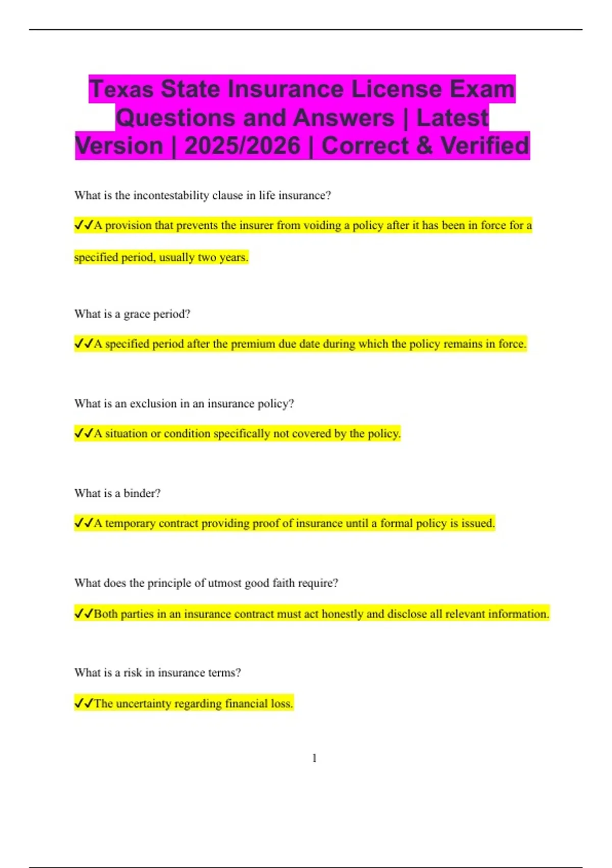 ✔✔Both parties in an insurance contract must act honestly and disclose all relevant information.
