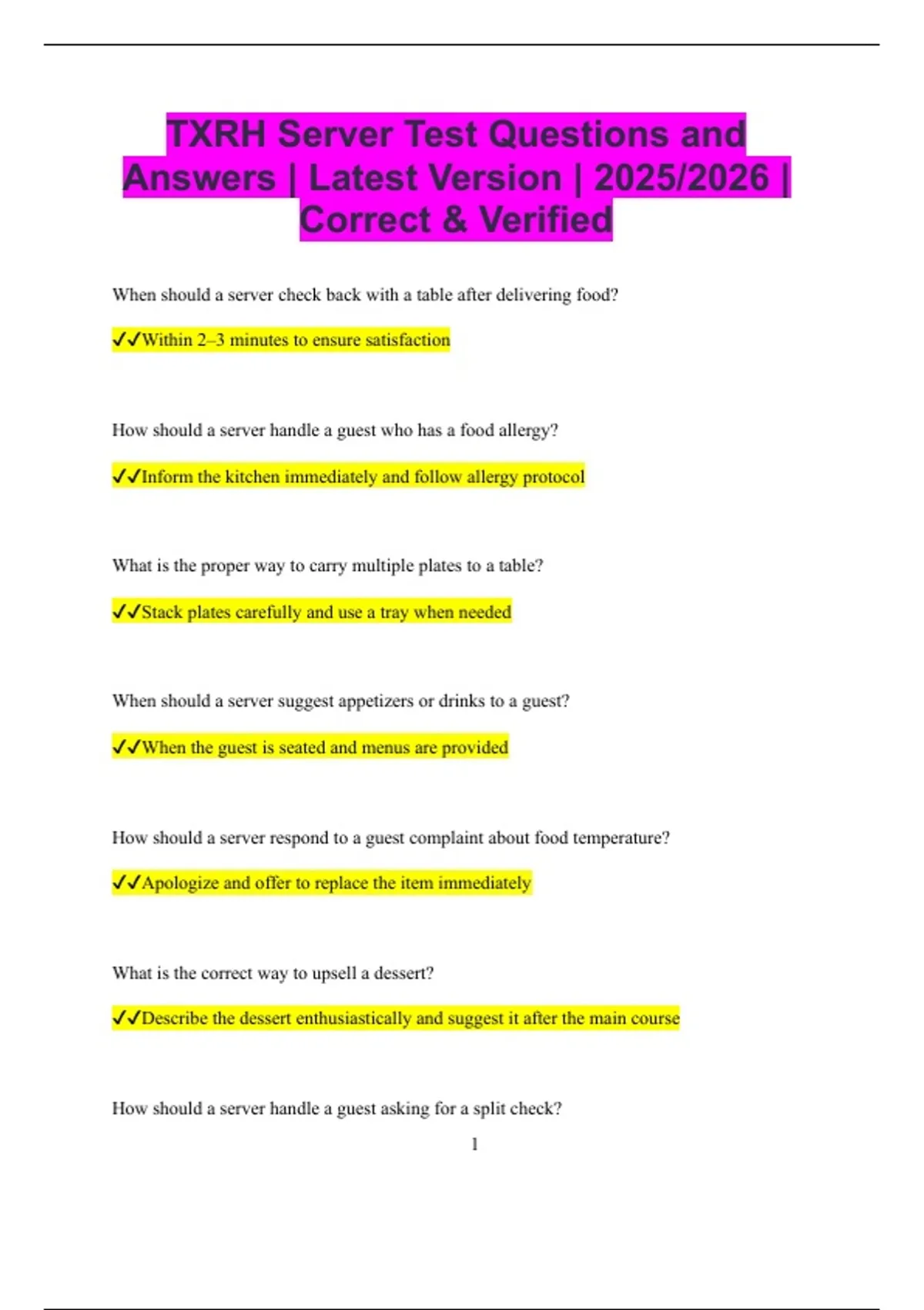 How should a server handle a guest asking for a split check?