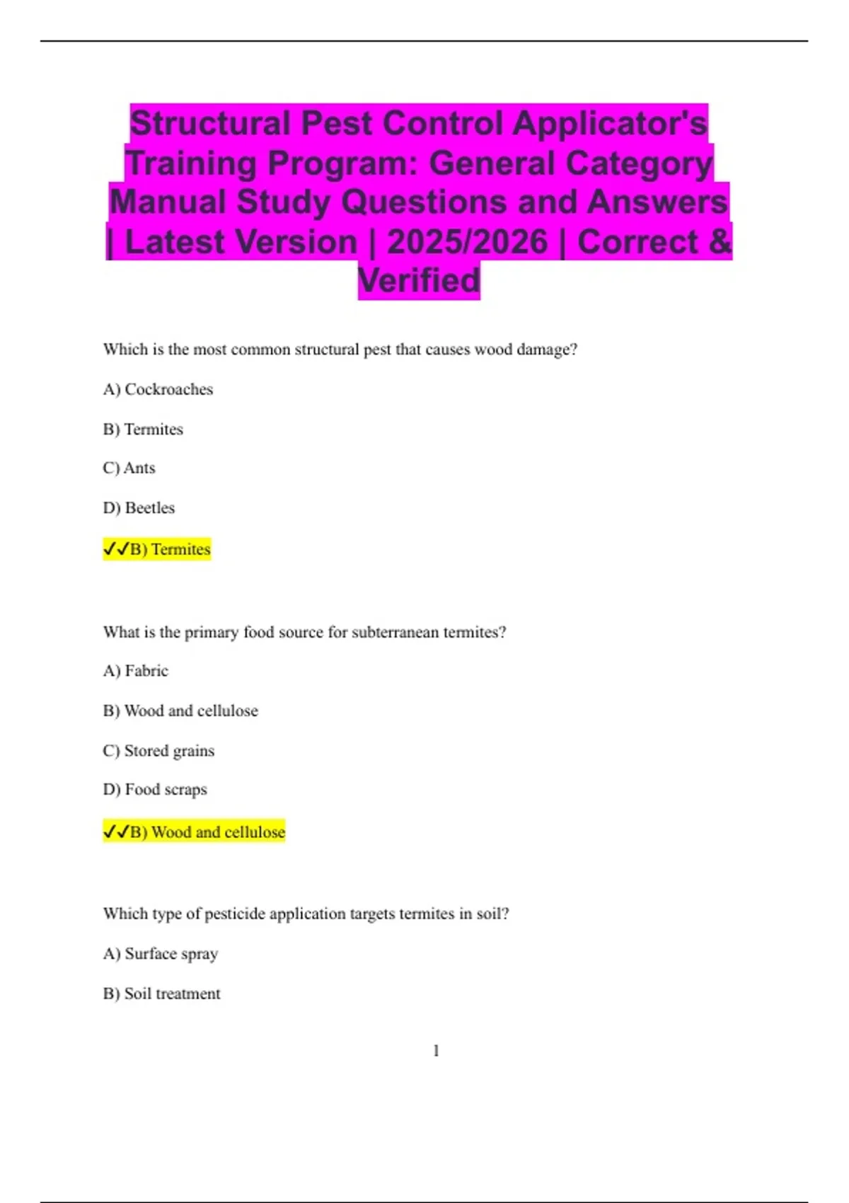 ✔✔B) Subterranean termites