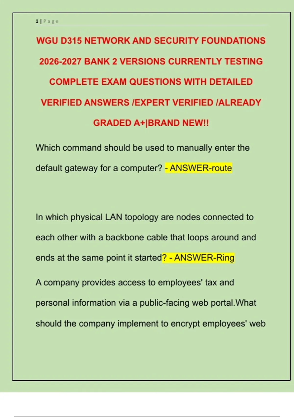 WGU D315 NETWORK AND SECURITY FOUNDATIONS