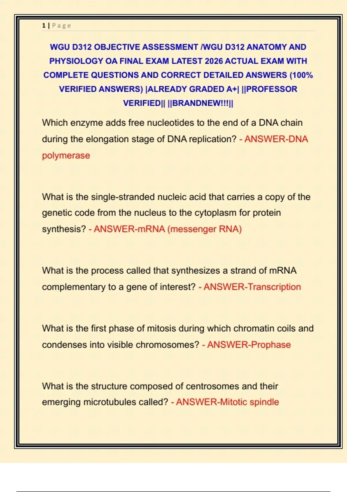 WGU D312 OBJECTIVE ASSESSMENT /WGU D312 ANATOMY AND