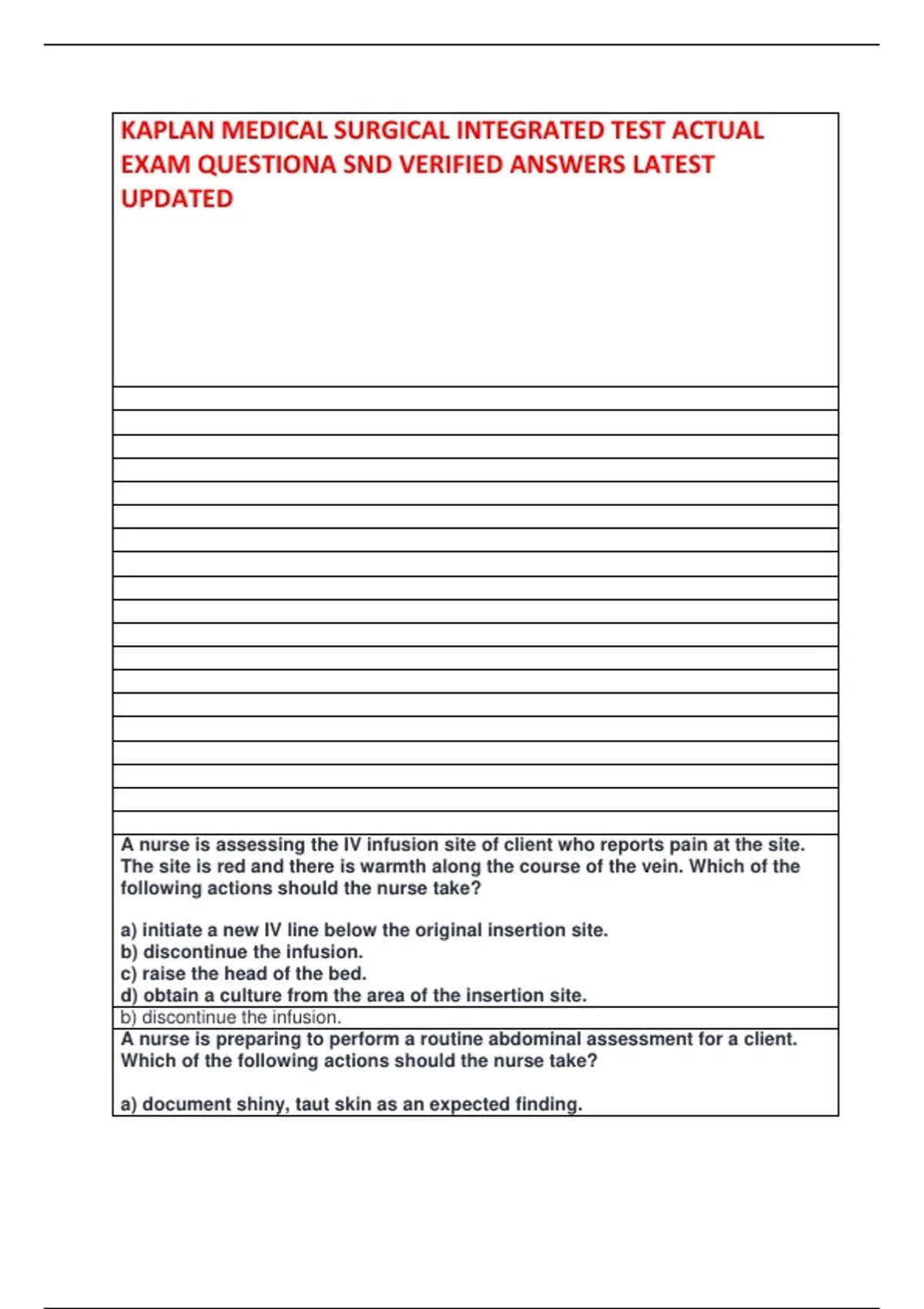KAPLAN MEDICAL SURGICAL INTEGRATED TEST ACTUAL EXAM QUESTIONA SND VERIFIED ANSWERS LATEST UPDATED