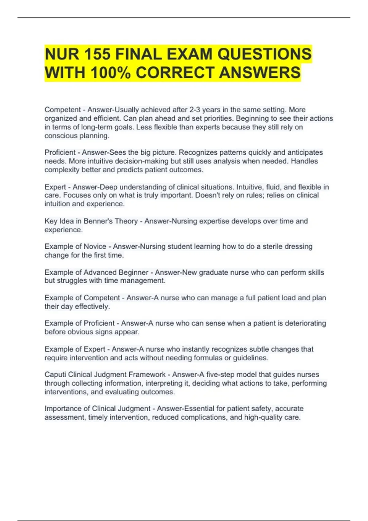Key Idea in Benner's Theory - Answer-Nursing expertise develops over time and