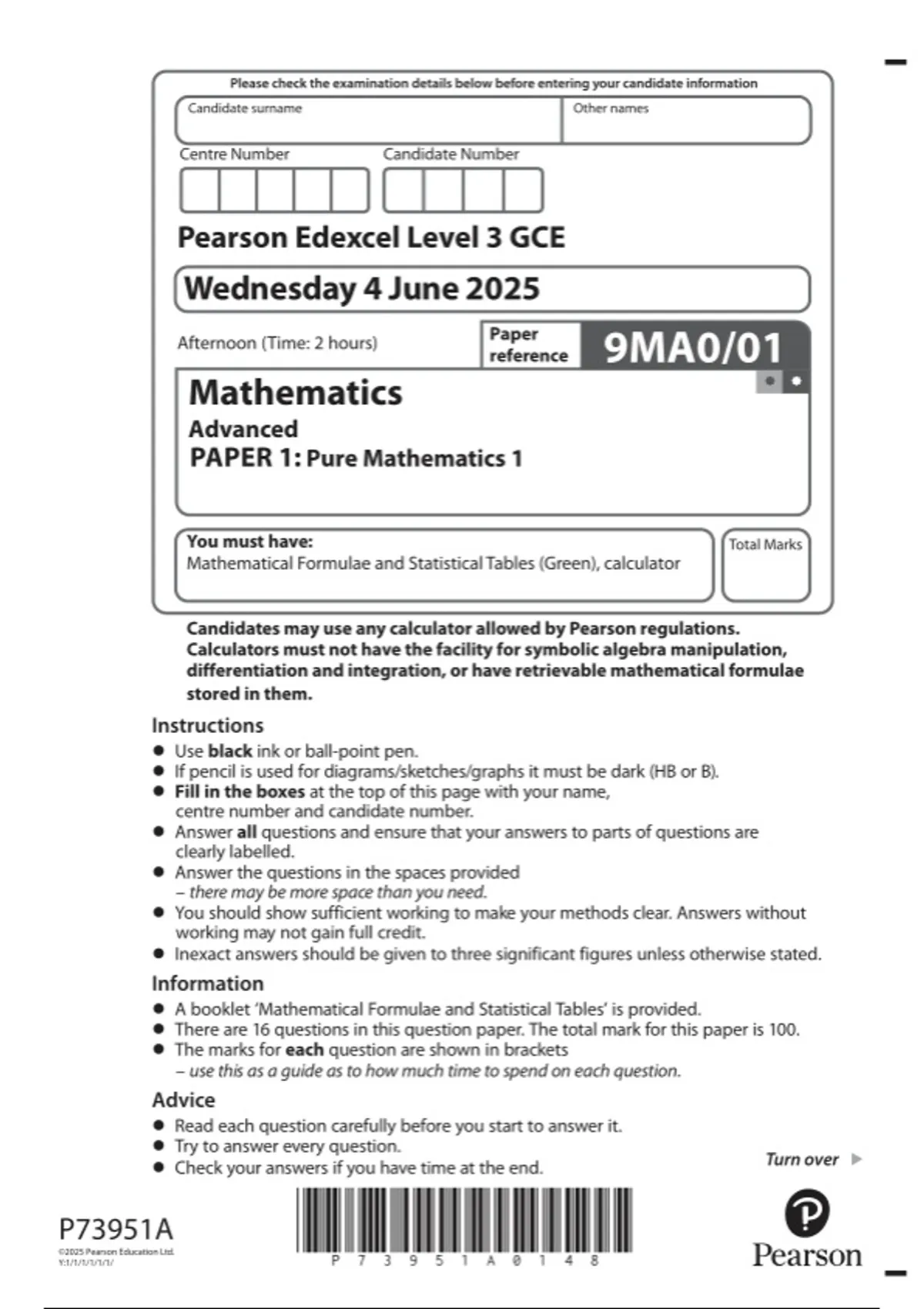pearson level 3 gce mathematics 2025
