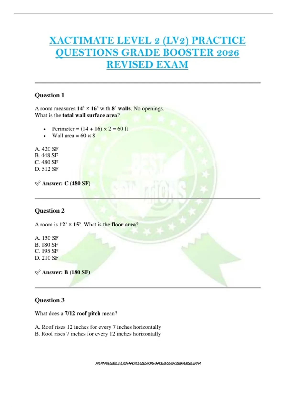 XACTIMATE LEVEL 2 (LV2) PRACTICE QUESTIONS GRADE BOOSTER 2026 REVISED EXAM