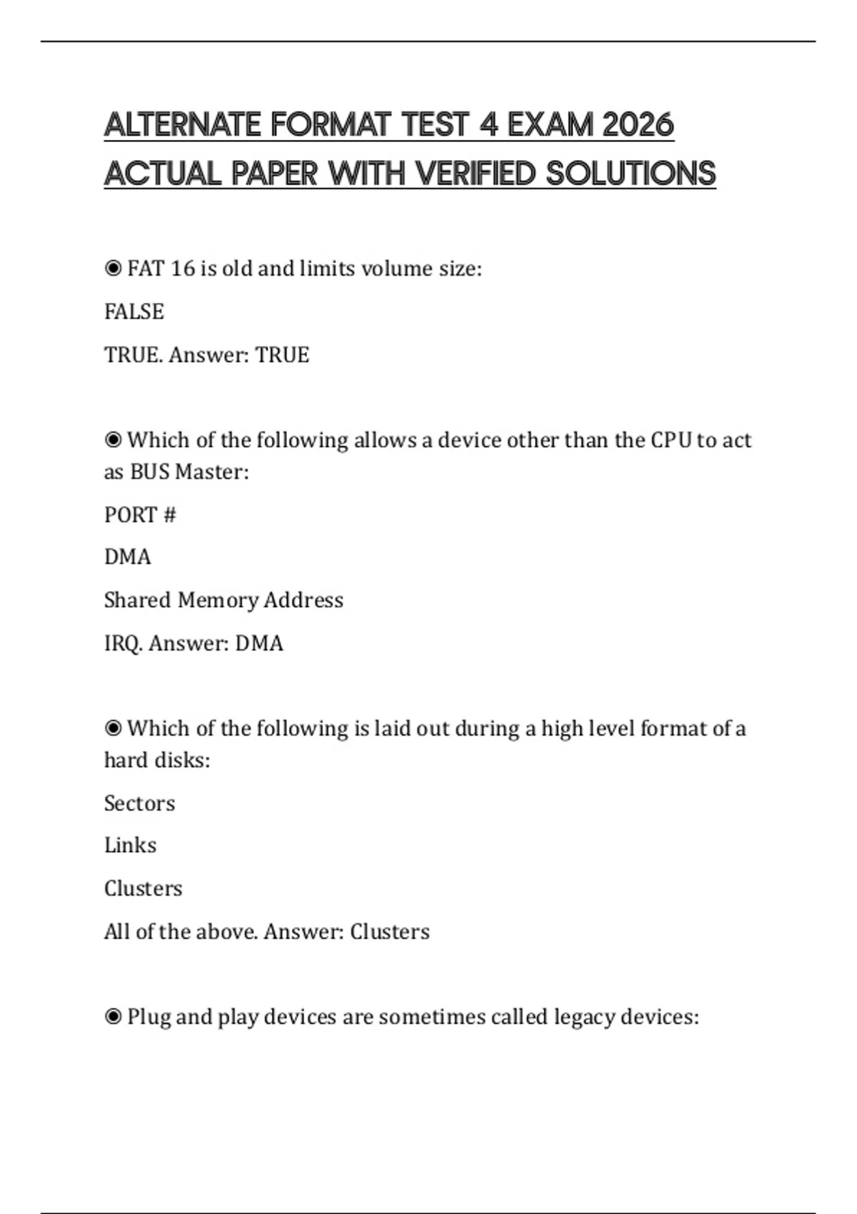 ALTERNATE FORMAT TEST 4 EXAM 2026 ACTUAL PAPER WITH VERIFIED SOLUTIONS