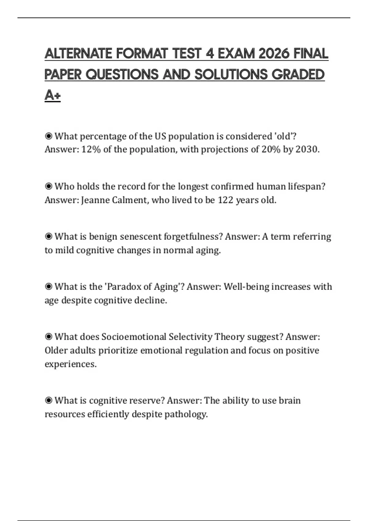 ◉ What is Alzheimer's disease? Answer: An age-related, irreversible