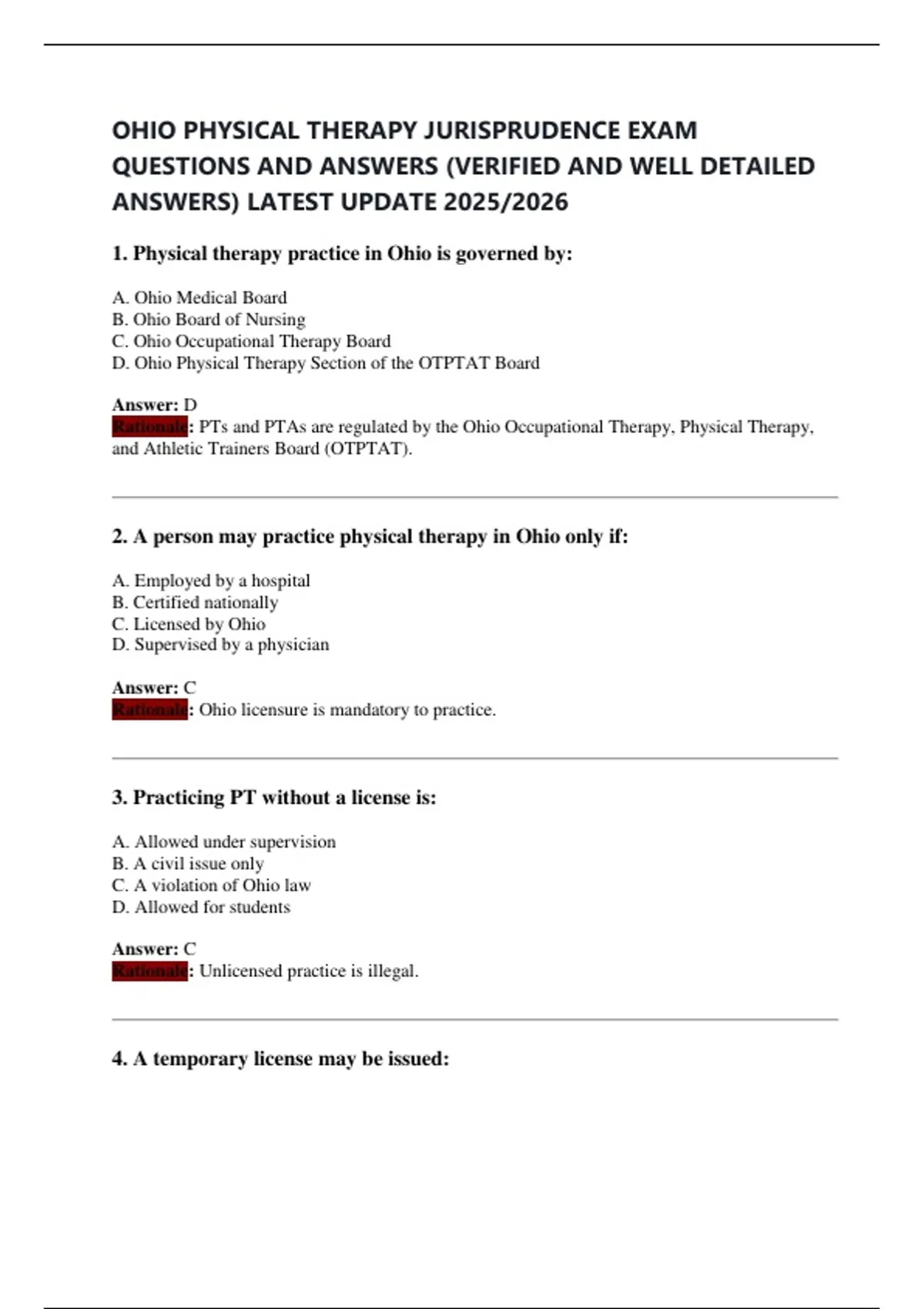 OHIO PHYSICAL THERAPY JURISPRUDENCE EXAM