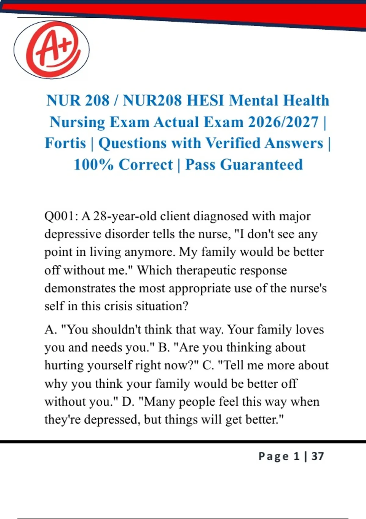 Q001: A 28-year-old client diagnosed with major