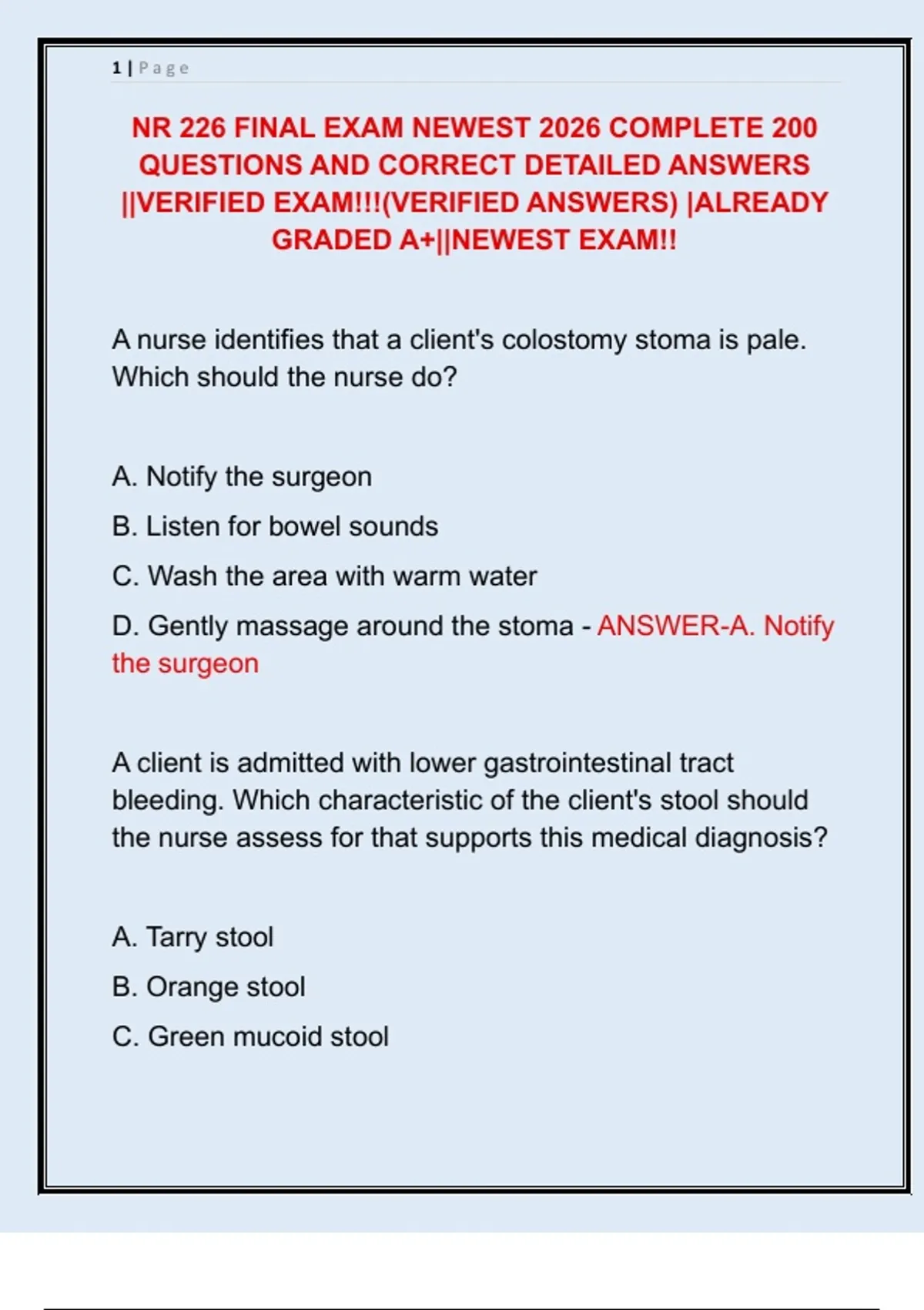 NR 226 FINAL EXAM NEWEST 2026 COMPLETE 200 QUESTIONS AND CORRECT DETAILED ANSWERS ||VERIFIED EXAM!!!(VERIFIED ANSWERS) |ALREADY GRADED A+||NEWEST EXAM!!