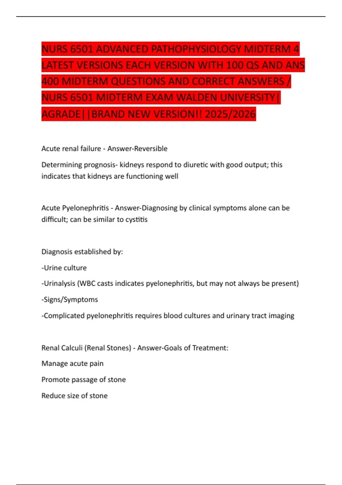 400 MIDTERM QUESTIONS AND CORRECT ANSWERS /