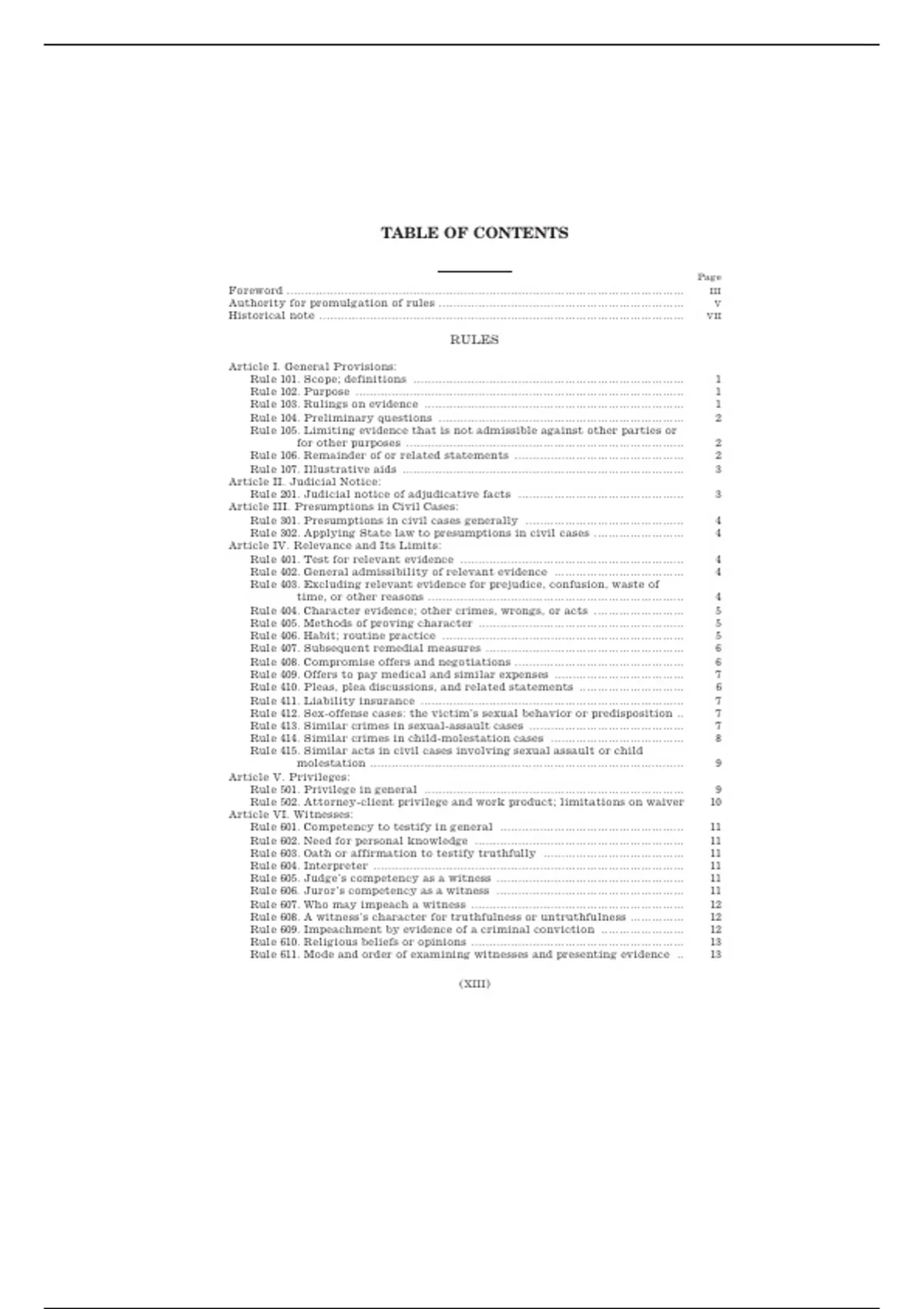 Rule 610. Religious beliefs or opinions ........................................................... 13