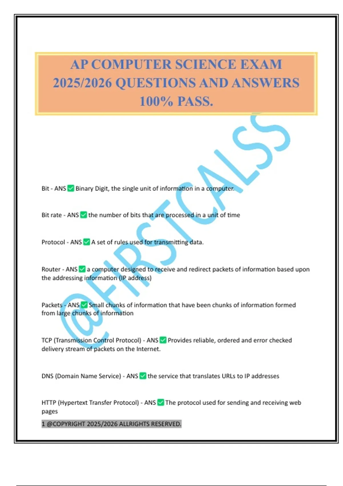 AP COMPUTER SCIENCE EXAM 2025/2026 QUESTIONS AND ANSWERS 100% PASS.