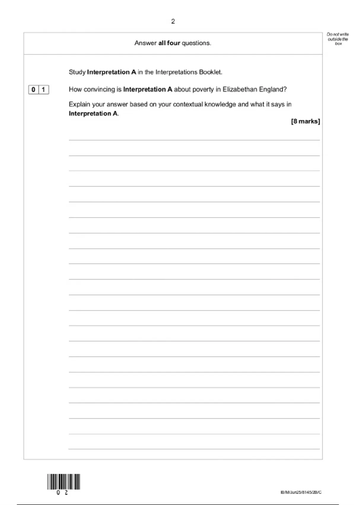2025 AQA GCSE HISTORY Paper 2 Section B/C: Elizabethan England, c1568–1603 Combined exam paper and mark scheme