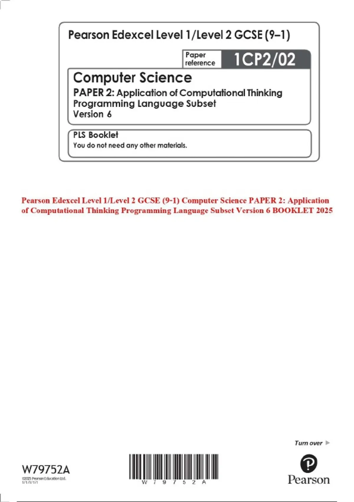 Pearson Edexcel Level 1/Level 2 GCSE (9–1) Computer Science PAPER 2: Application of Computational Thinking Programming Language Subset Version 6 BOOKLET 2025
