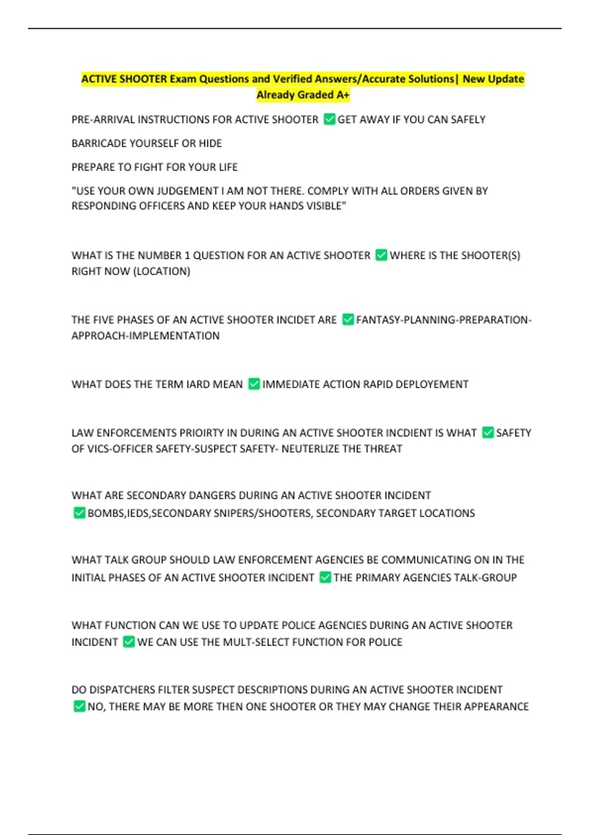 ACTIVE SHOOTER Exam Questions and Verified Answers/Accurate Solutions| New Update