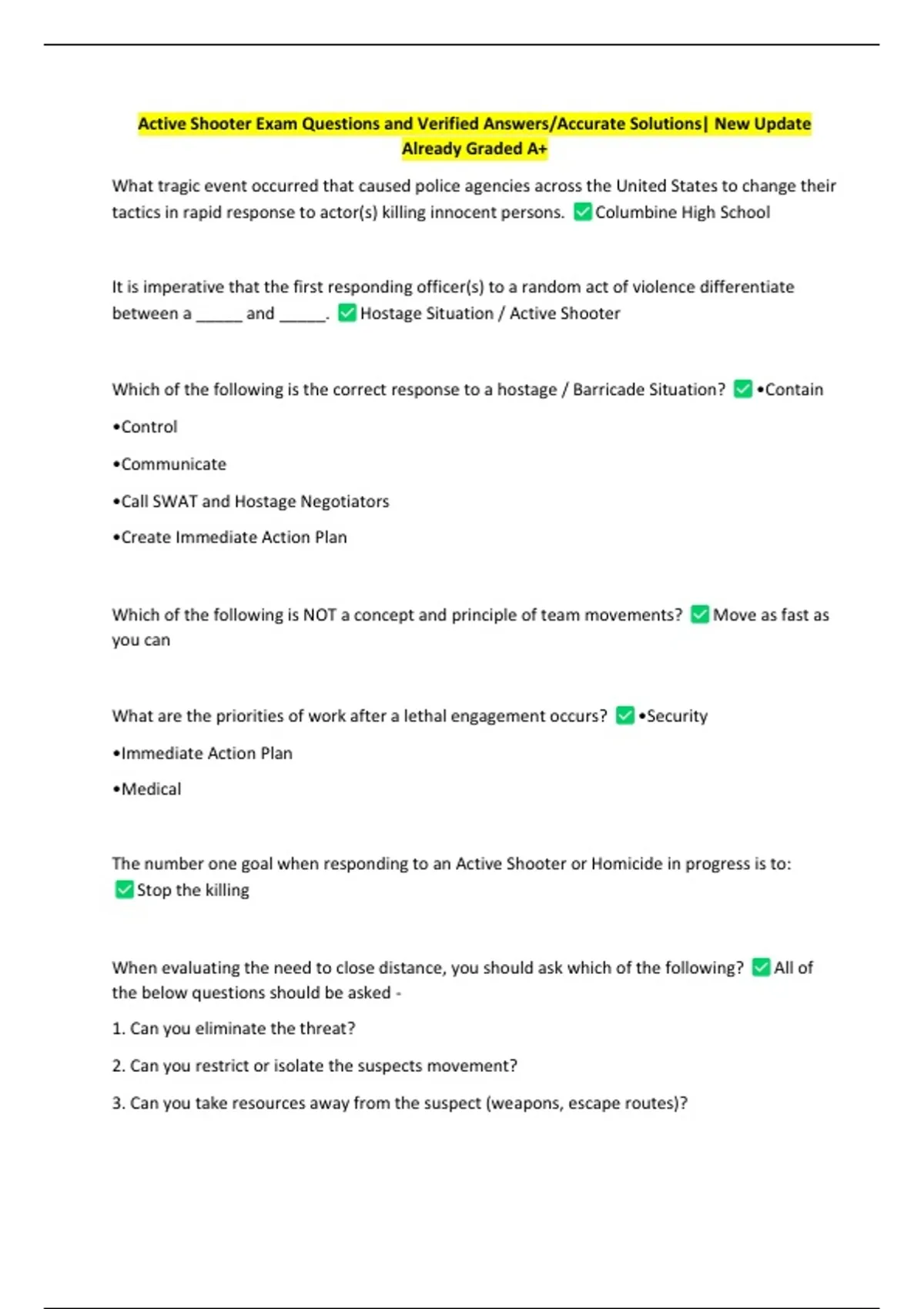 Active Shooter Exam Questions and Verified Answers