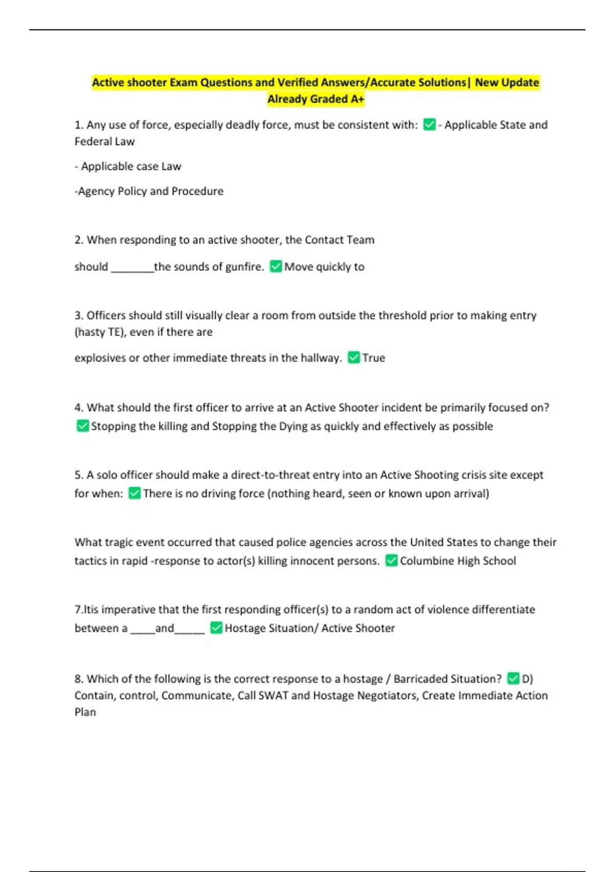 Active shooter Exam Questions and Verified Answers/Accurate Solutions| New Update