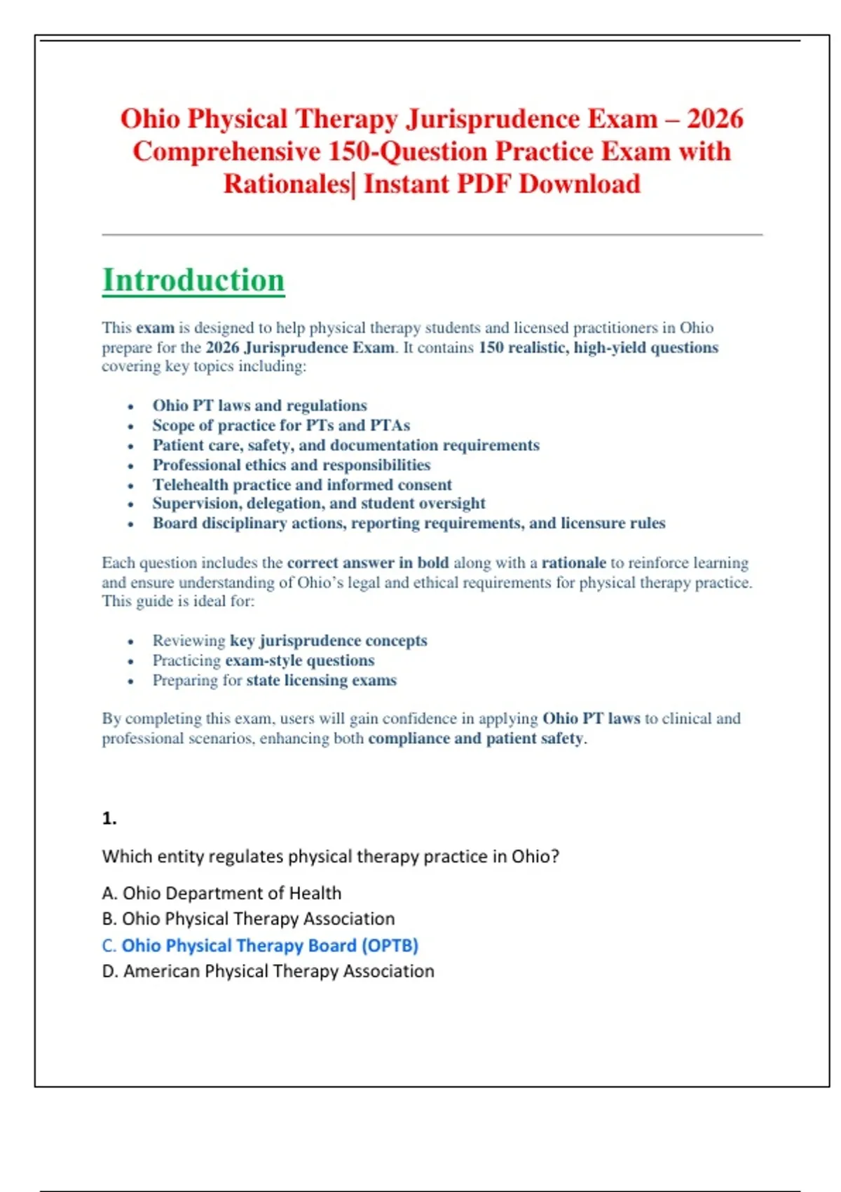 and ensure understanding of Ohio’s legal and ethical requirements for physical therapy practice.